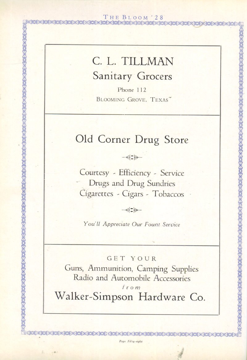 Ads – C. L. Tillman Sanitary Grocers –Old Corner Drug