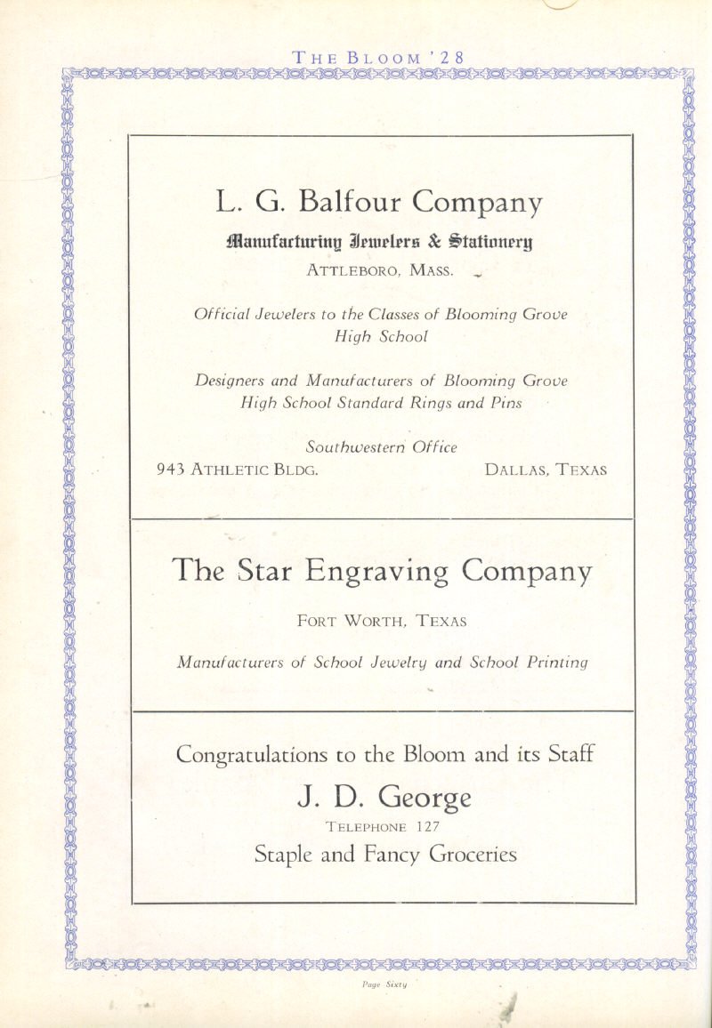 Ads –L. G. Balfour Company –The Star Engraving Co.—J. D.