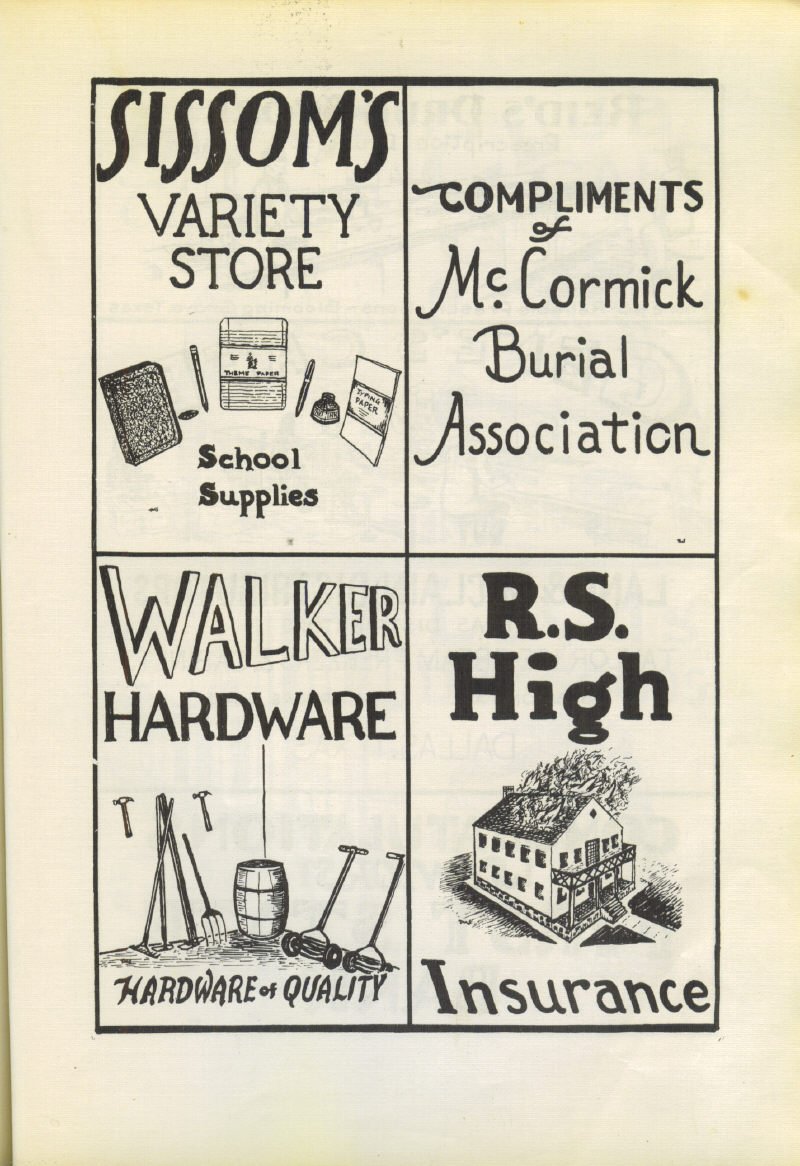 Ad Sissoms Variety Store, McCormick Burial Association,