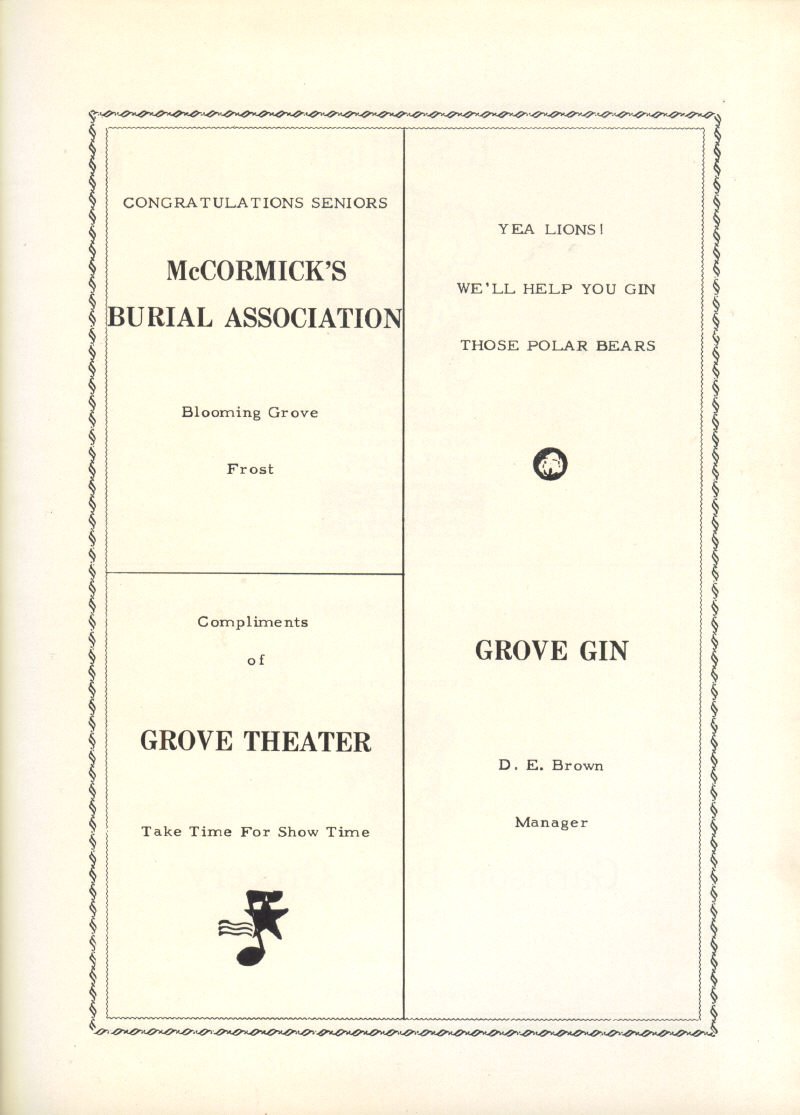 Ads – McCormick’s Burial Association, Grove Theatre, Grove