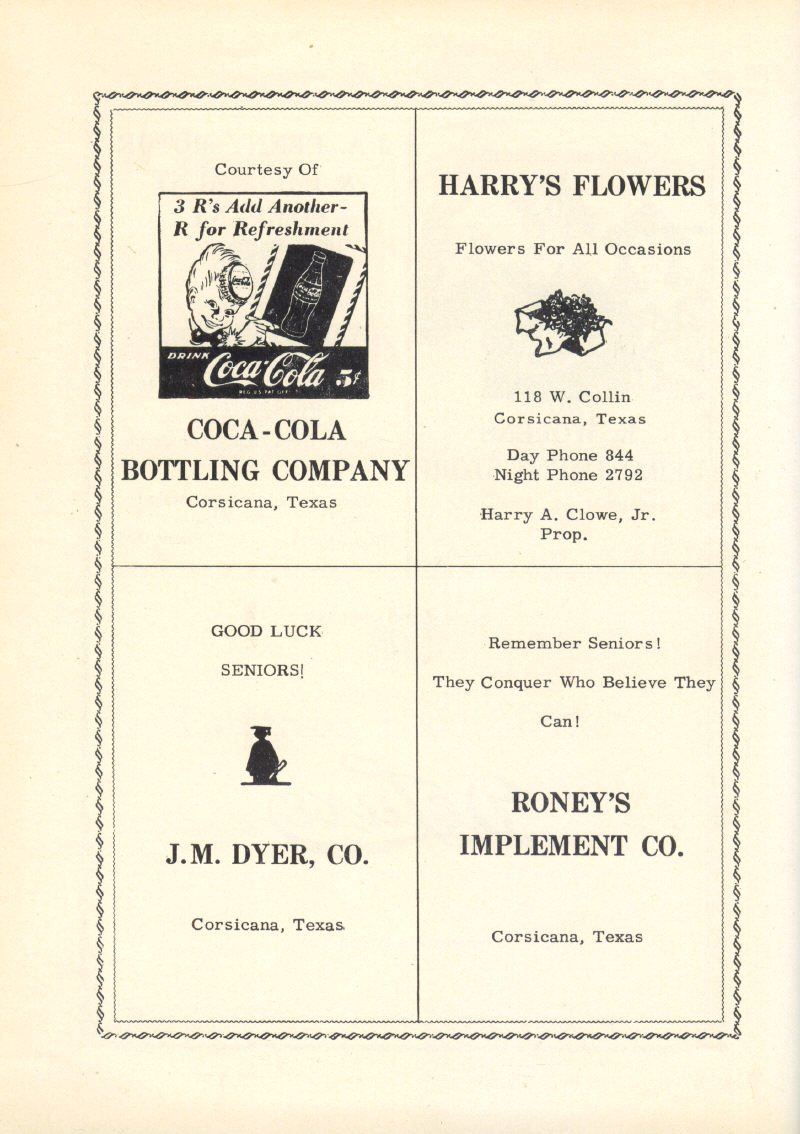 Ads – Coca – Cola Bottling Co. –Harry’s Flowers, Harry