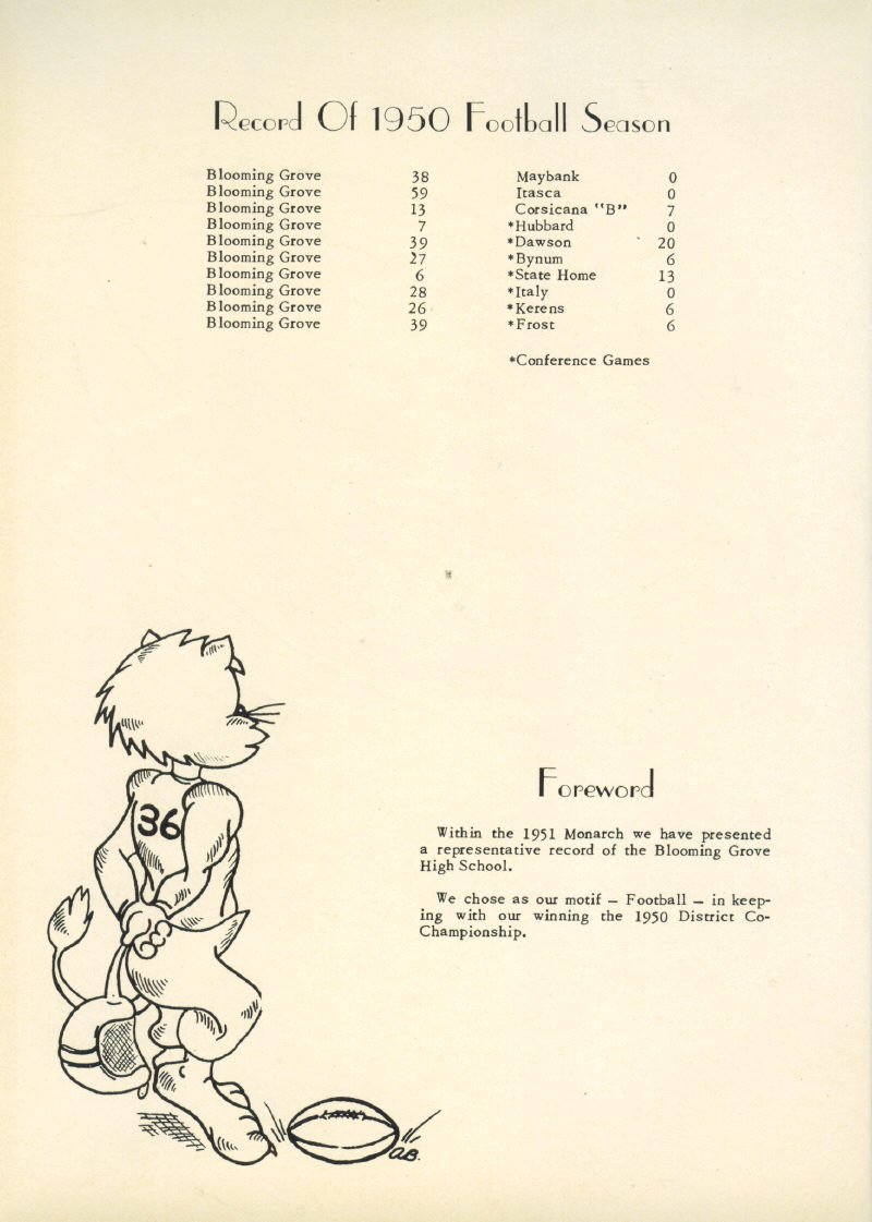 Record of 1950 Football Season (1950 District Champs)