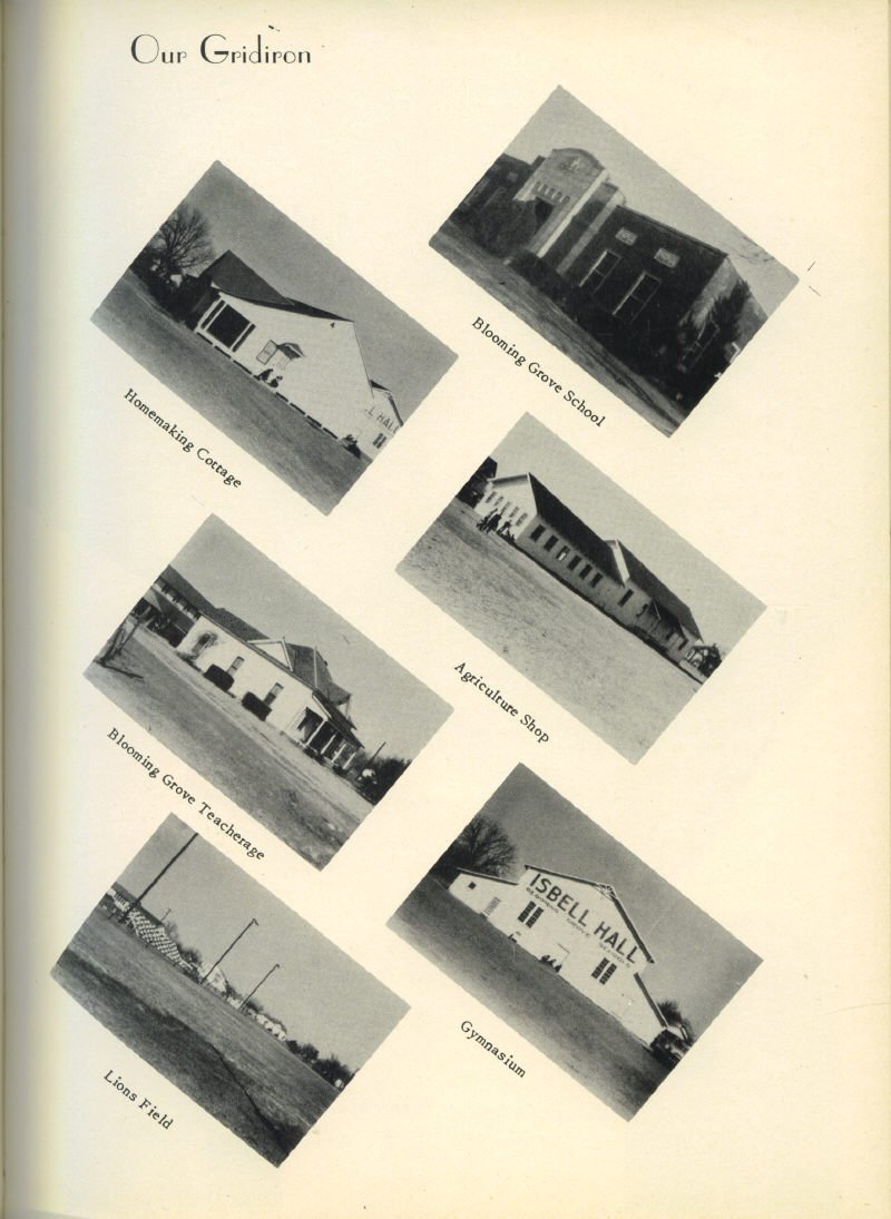 Cottage, Agriculture Shop, Blooming Grove Teacherage, Gymnasium,