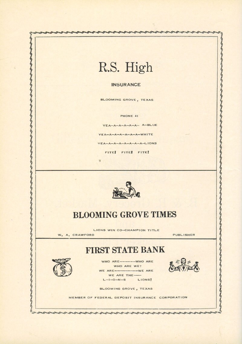 Ads R. S. High Insurance Blooming Grove Times, W.
