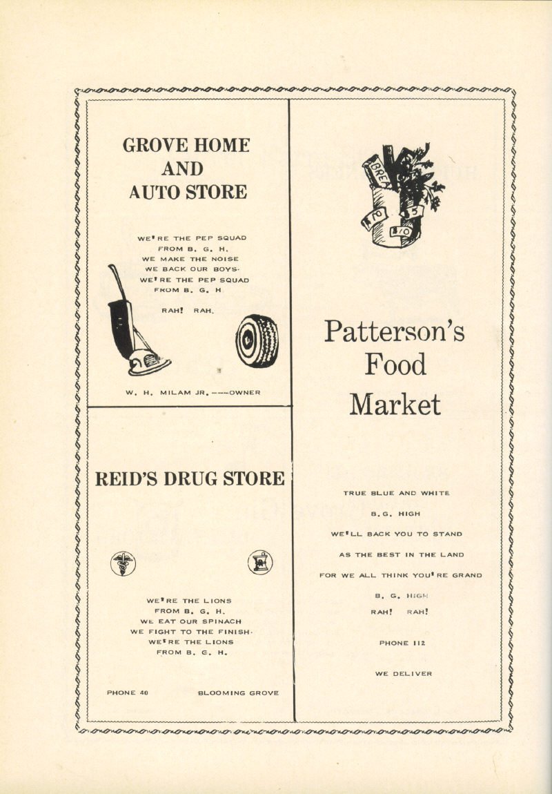 Our Gridiron Pictured Blooming Grove School, Homemaking