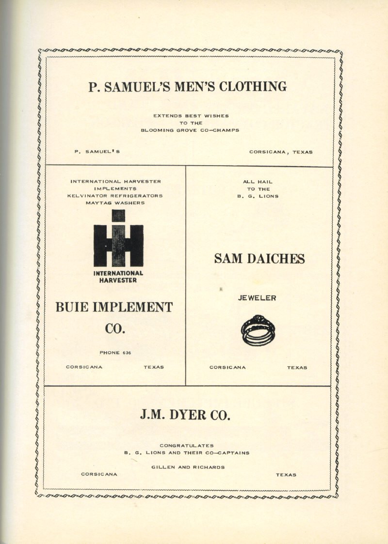 Ads P. Samuels Mens Clothing Buie Implement Co.