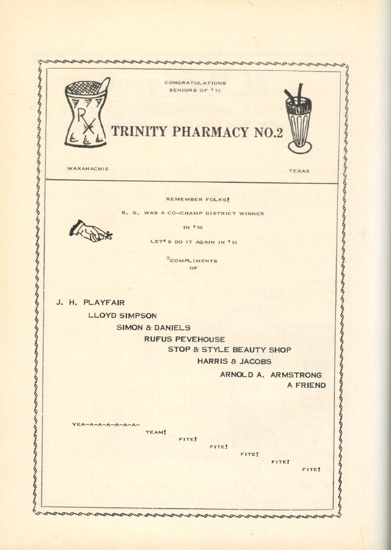 Ads Trinity Pharmacy No. 2 ; Compliments of : Dr.