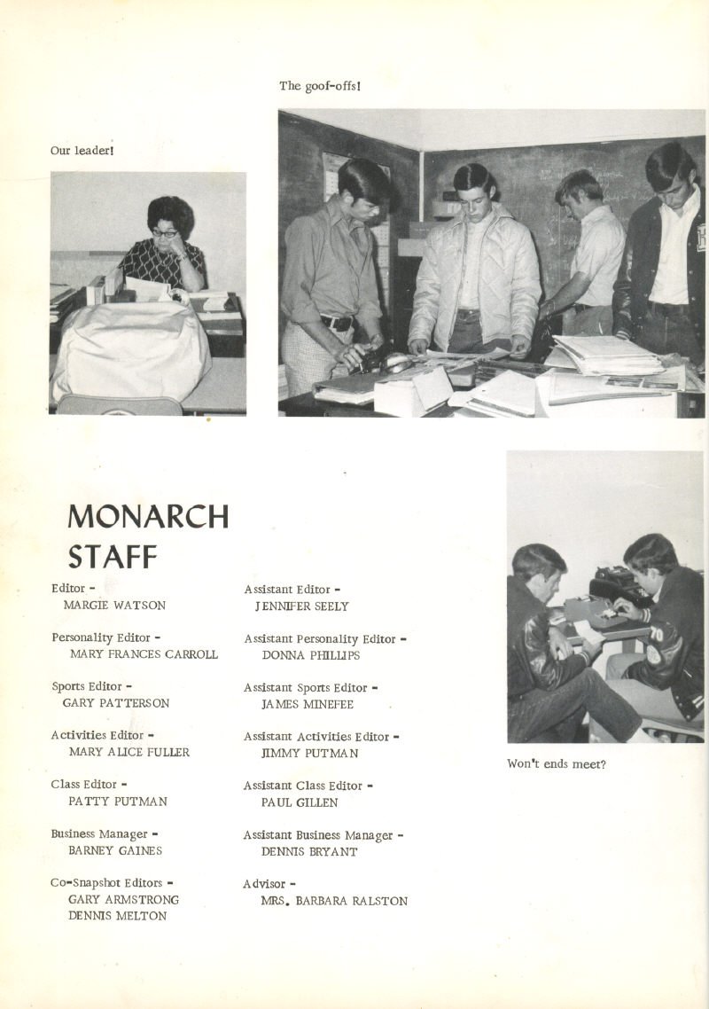 Monarch Staff Advisor Mrs. Barbara Ralston, Editor