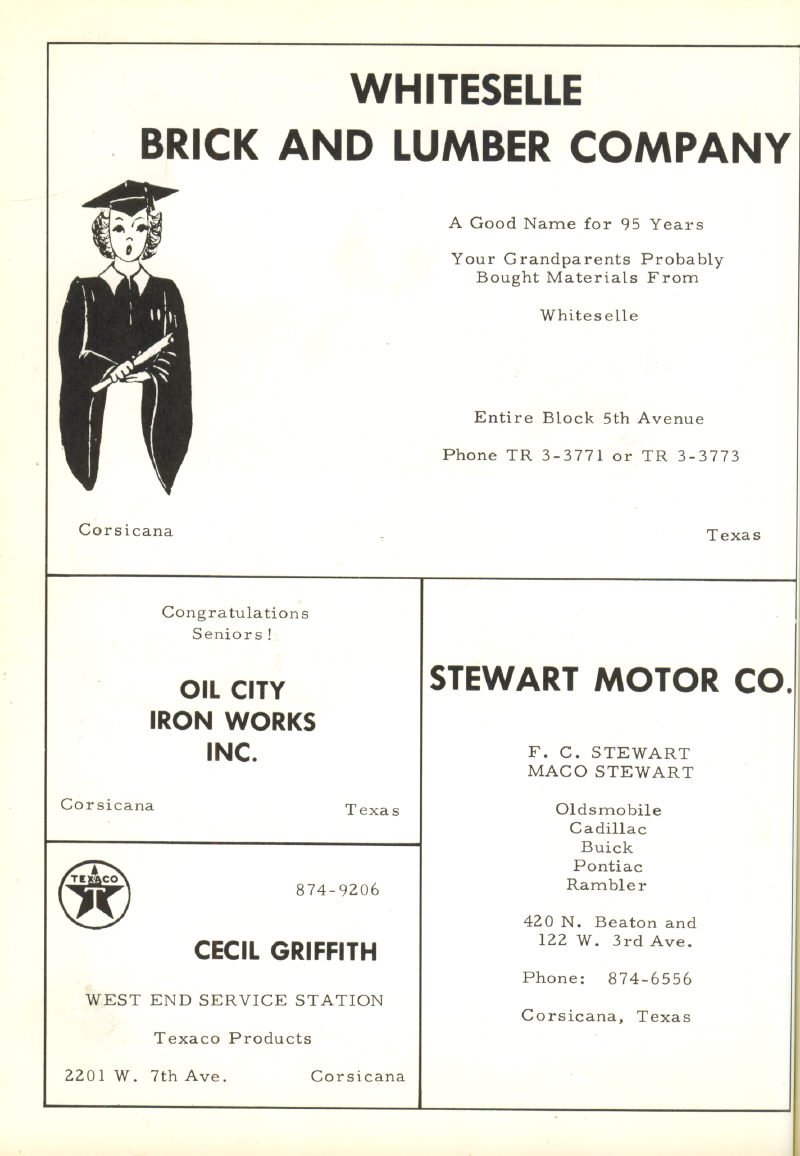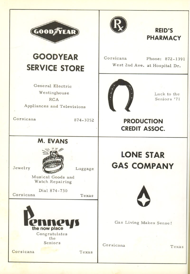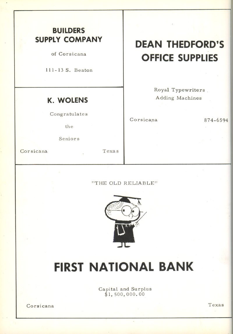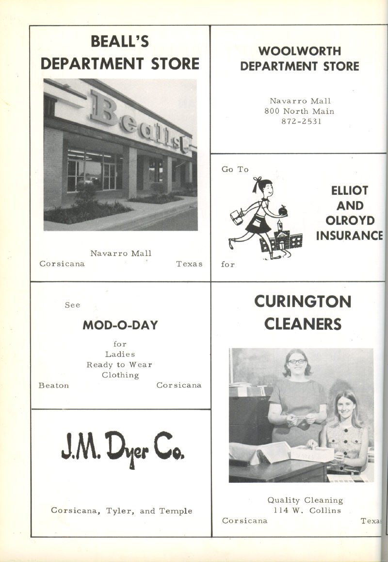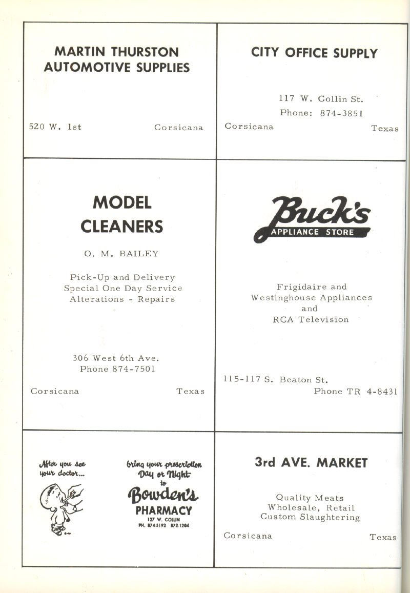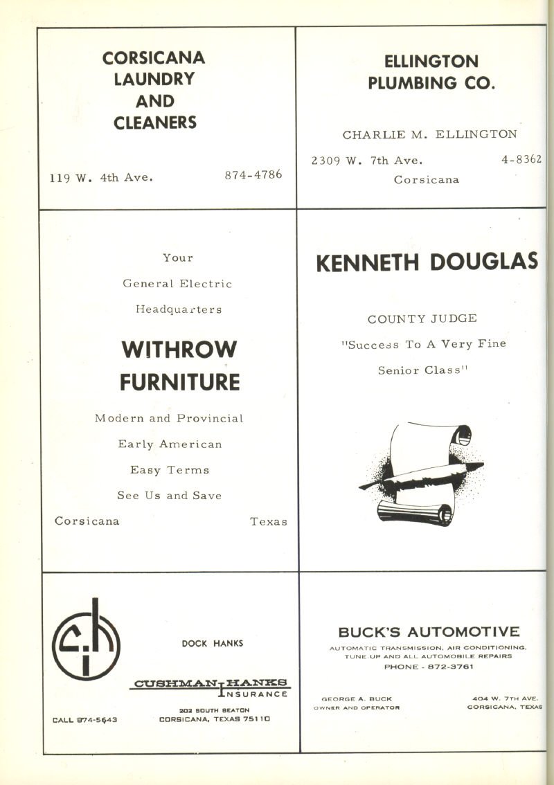 Ads Corsicana Laundry & Cleaners; Ellington Plumbing; Withrow Furniture; Kenneth Douglas County