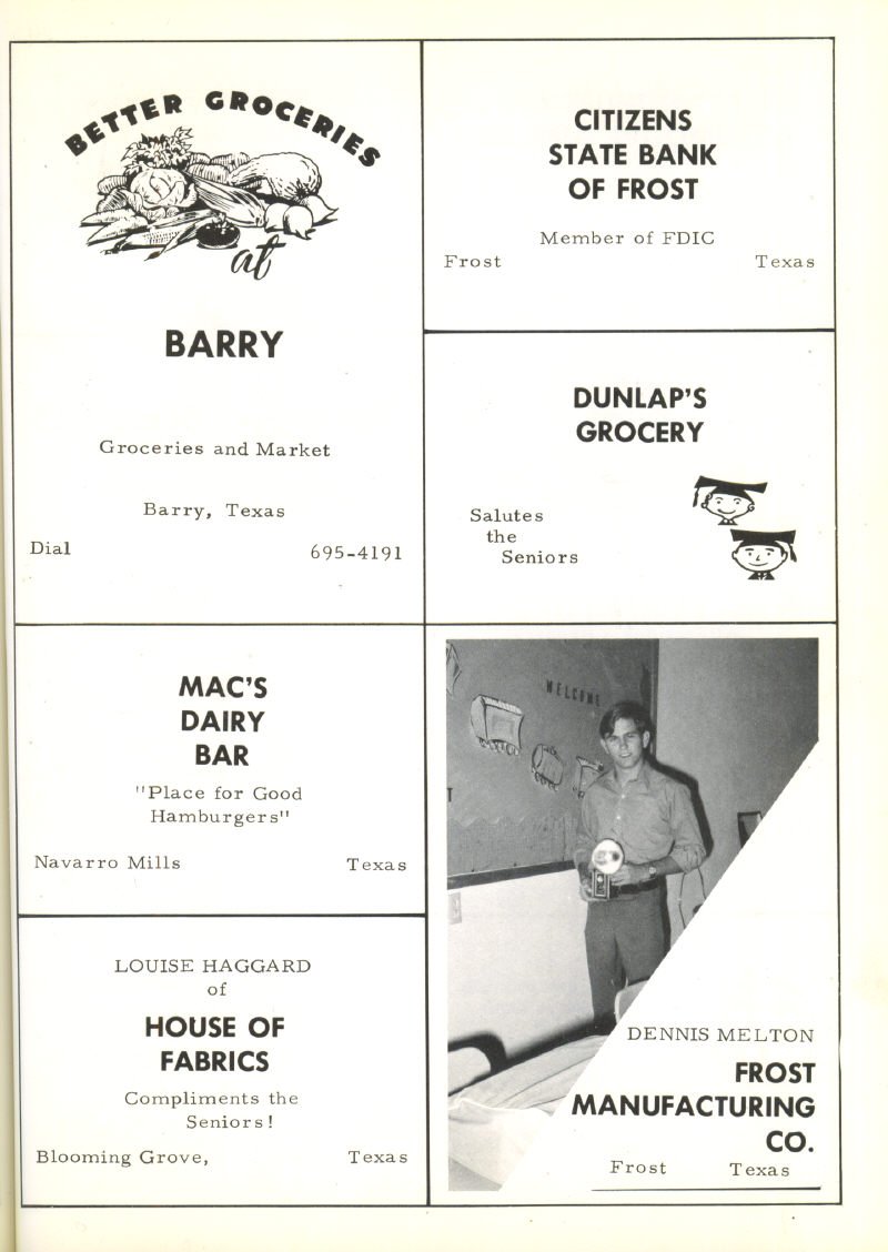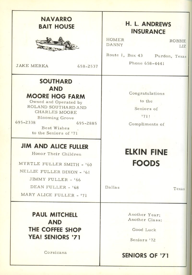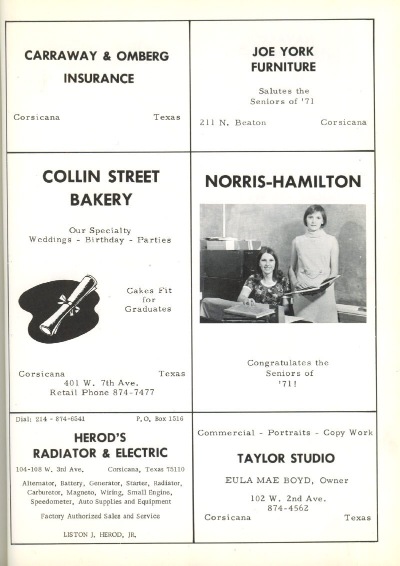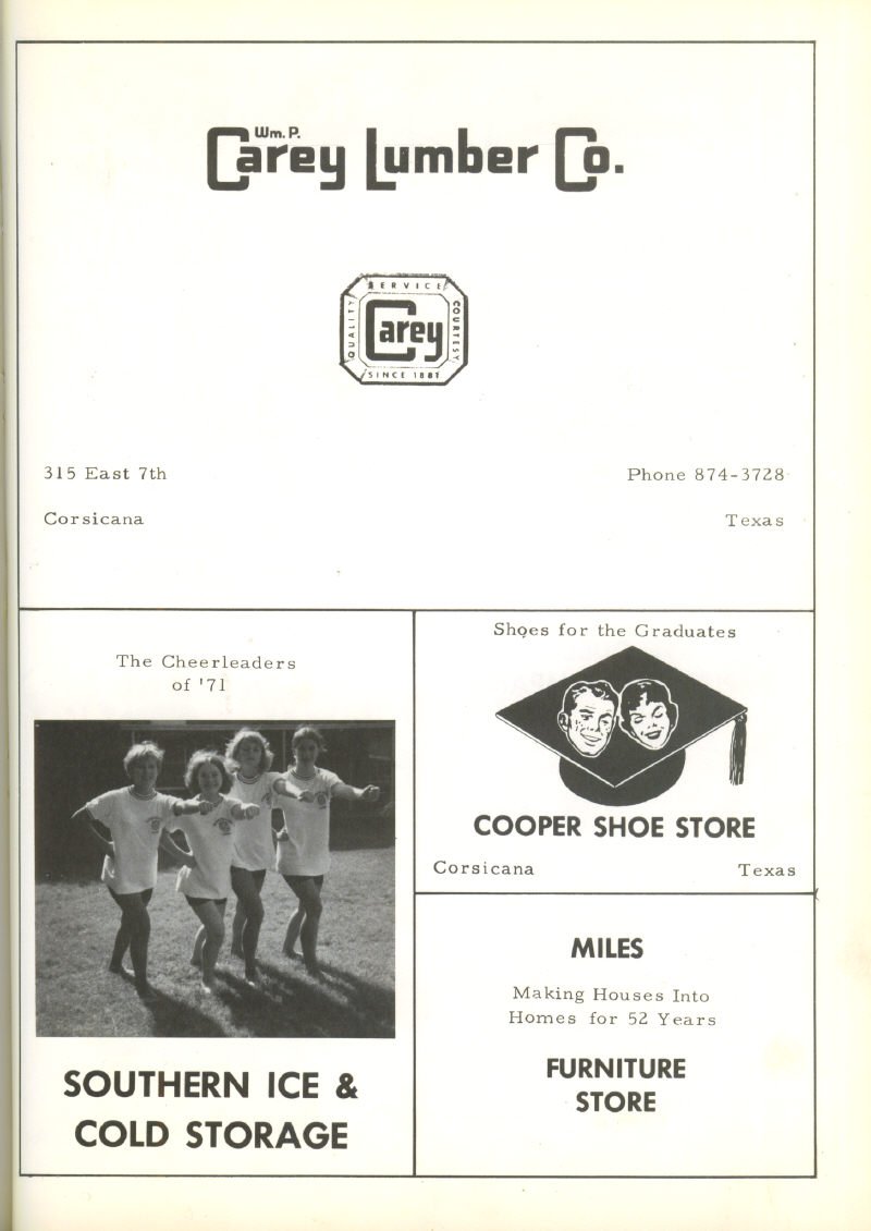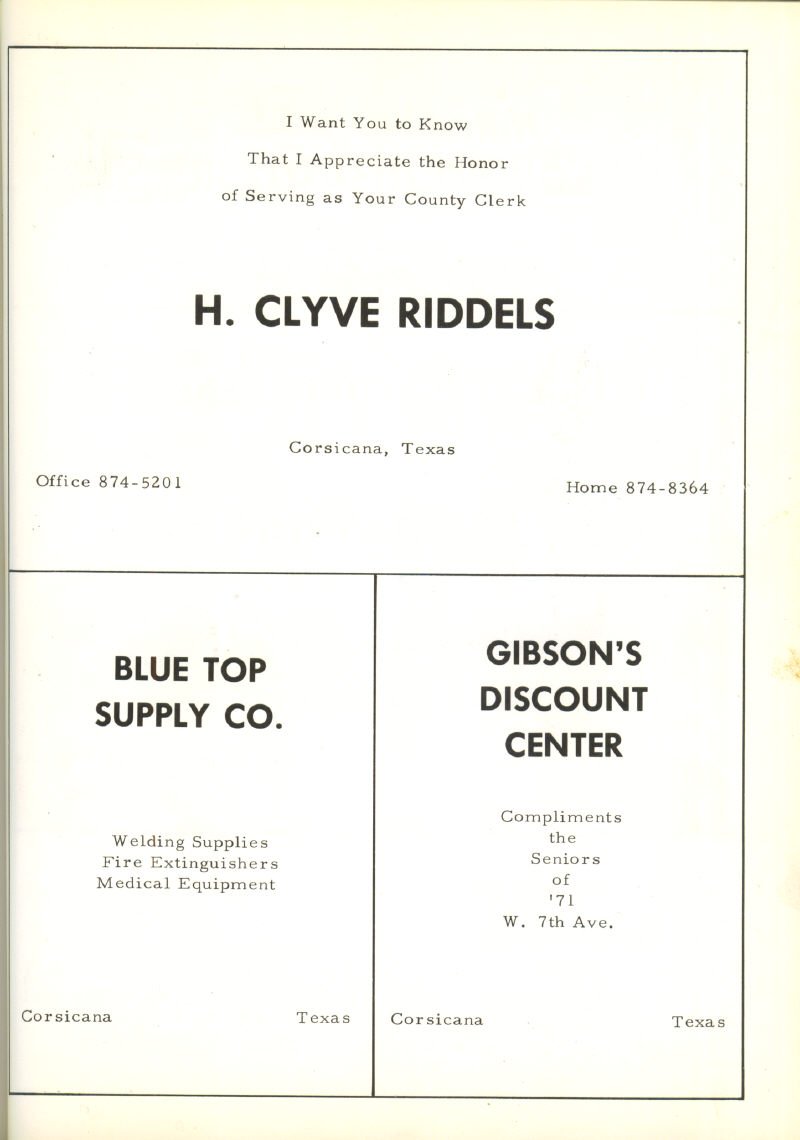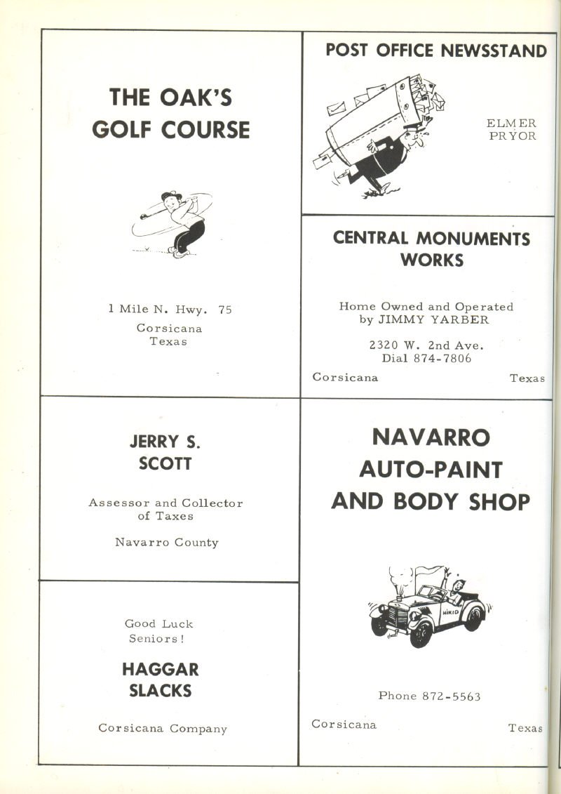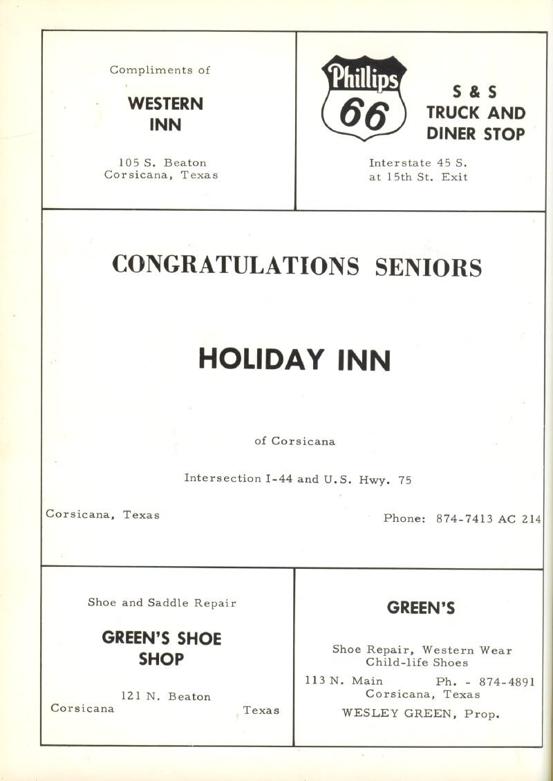 Ads Corsicana Laundry & Cleaners; Ellington Plumbing; Withrow Furniture; Kenneth Douglas County