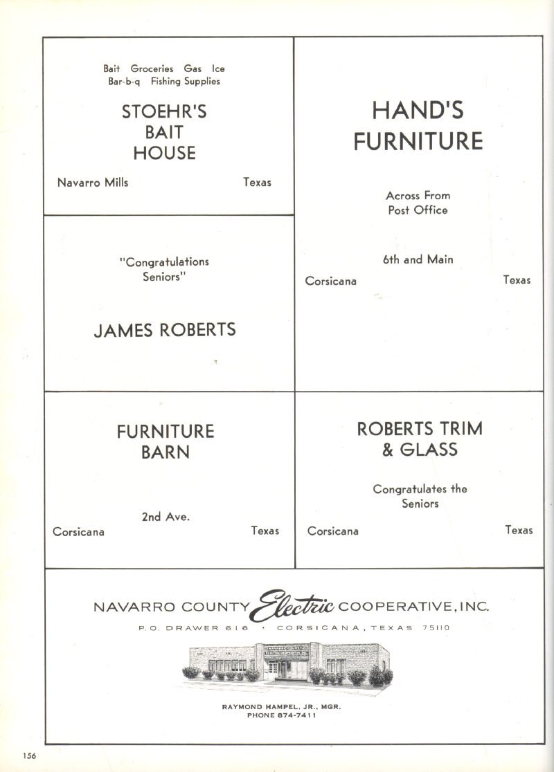 Furniture; Roberts Trim & Glass; Navarro County Electric