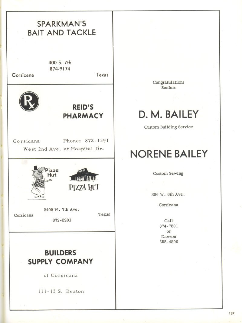 Ads Sparkmans Bait & Tackle; Reids Pharmacy; Pizza Hut;