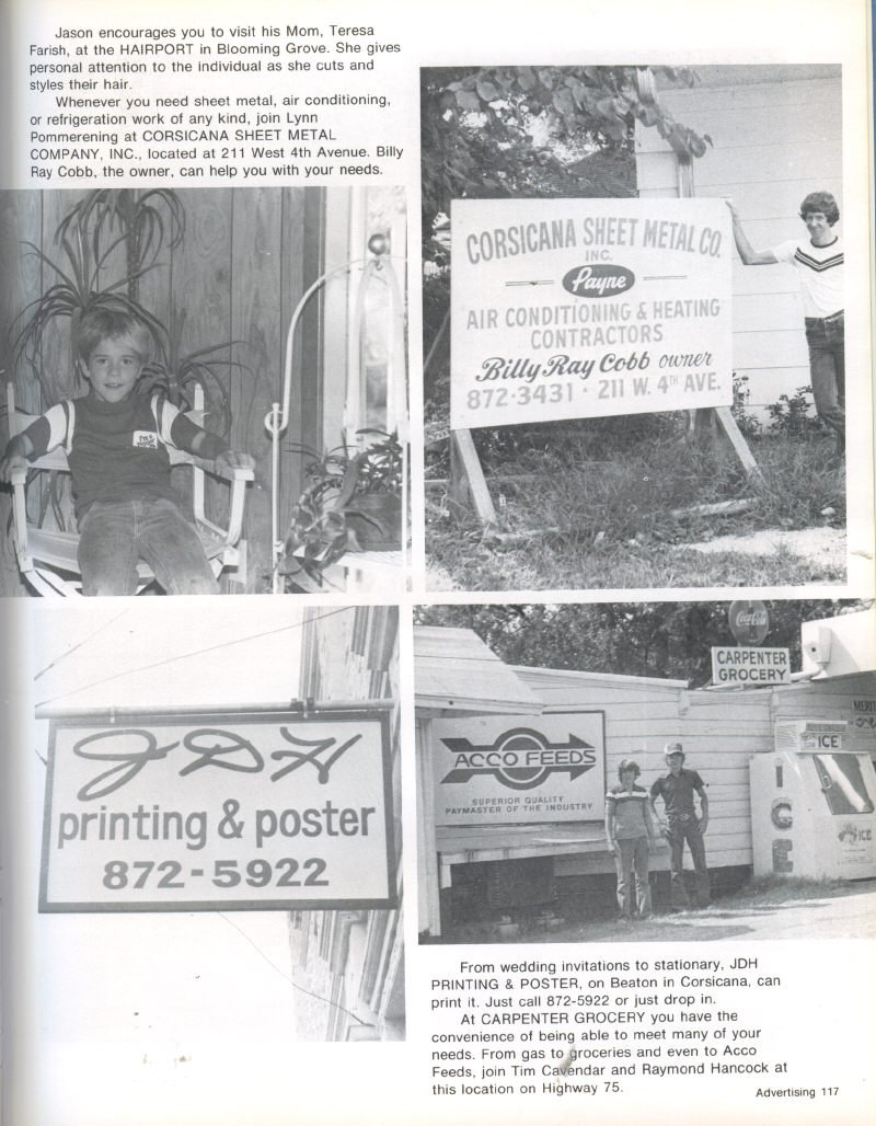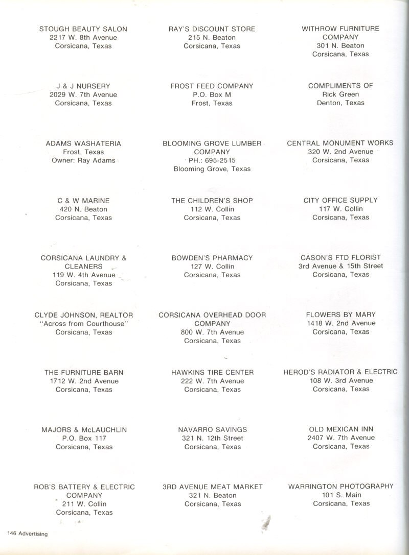 Salon, J&J Nursery, Adams Washateria, C.&W. Marine, Corsicana