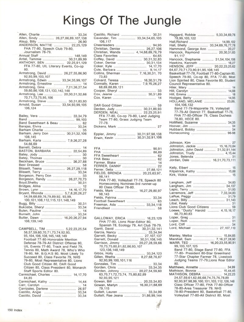 Index of names in yearbook,