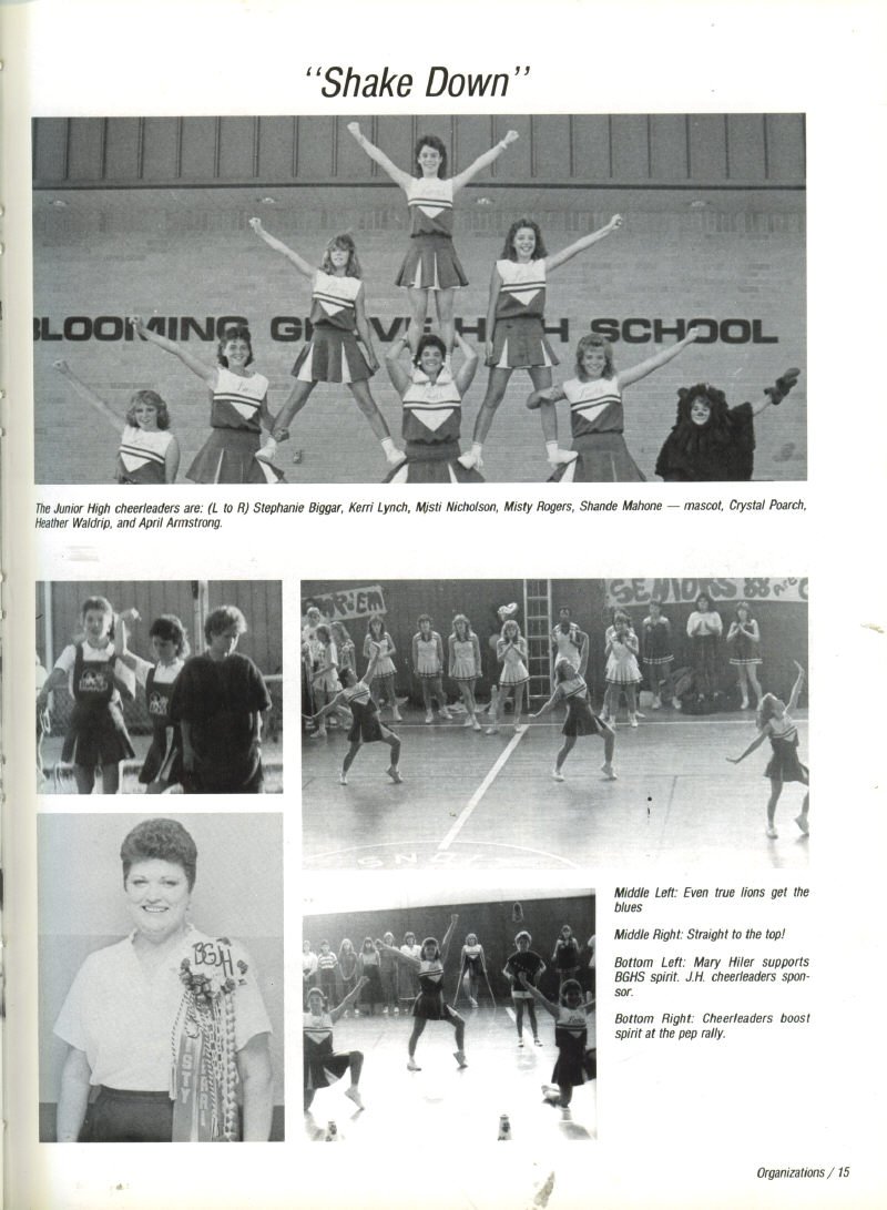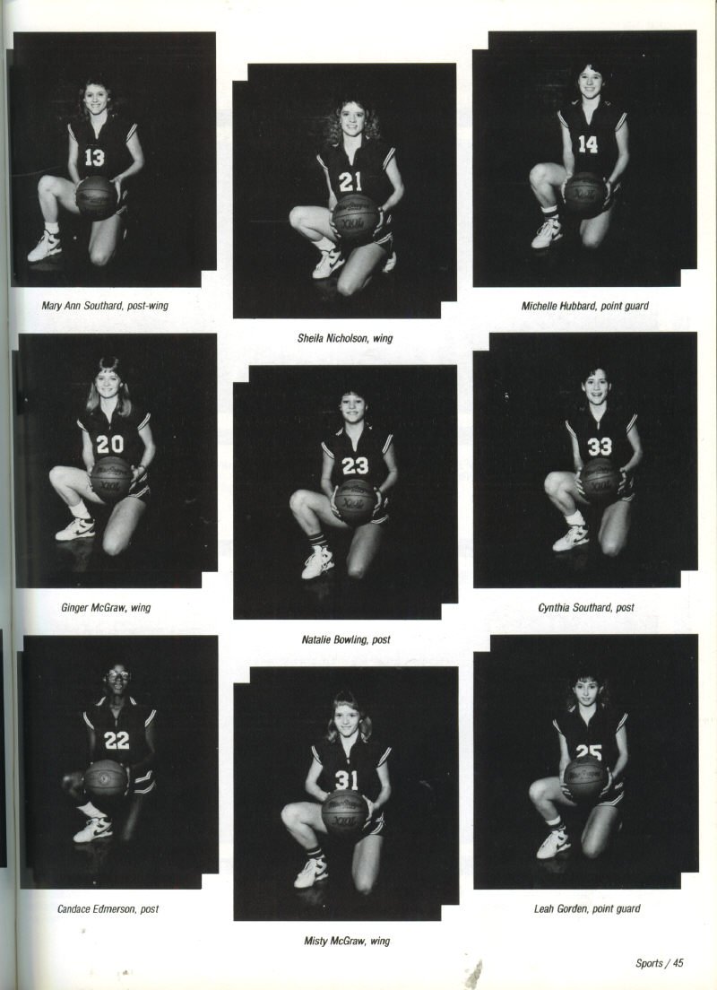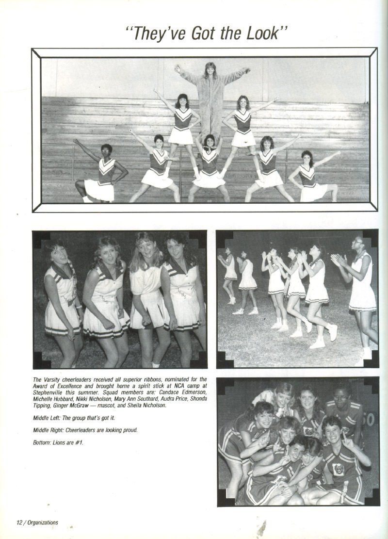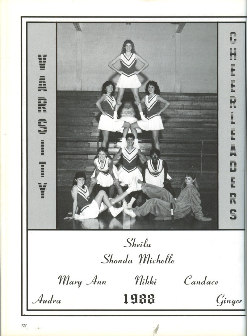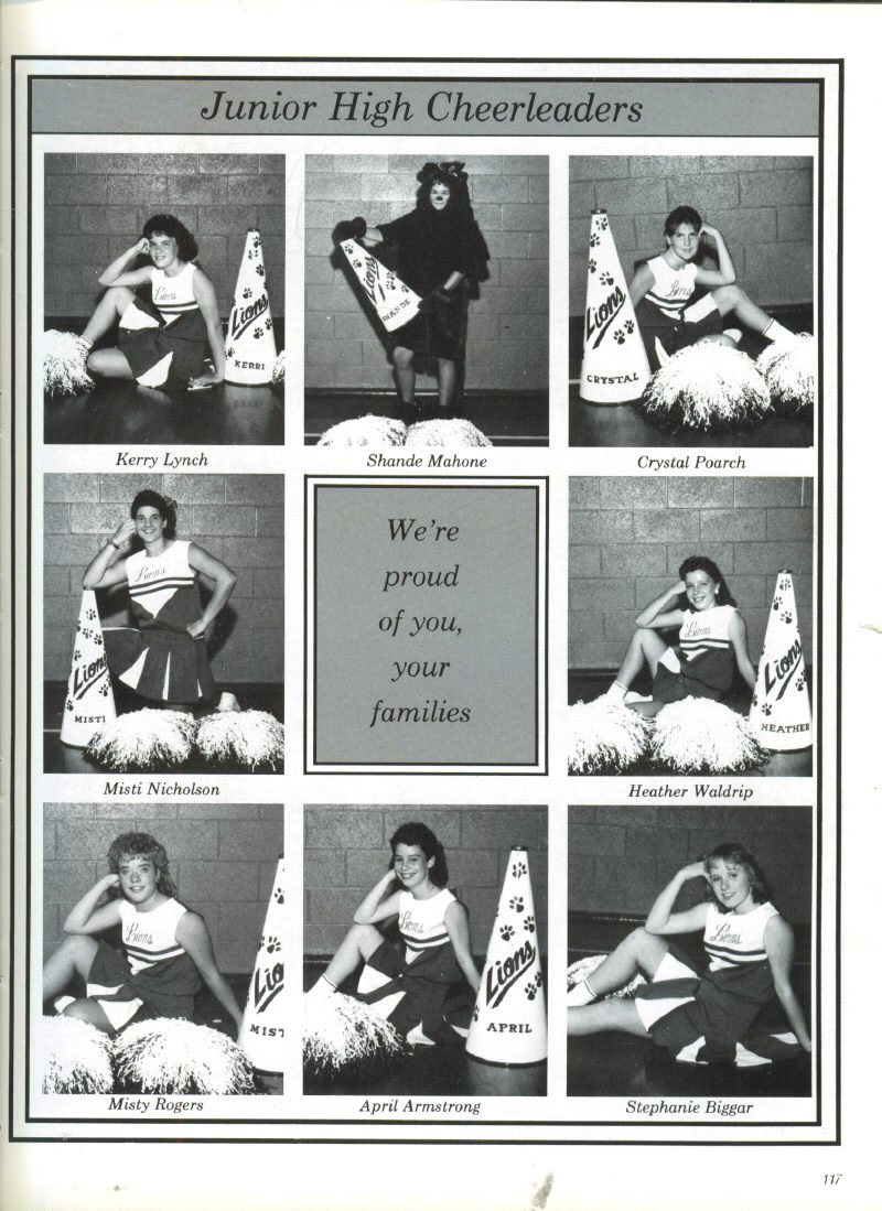 Junior Varsity Cheerleaders Stephanie Hill, Theresa Nevill, Gail Taylor, Natalie Bowling,