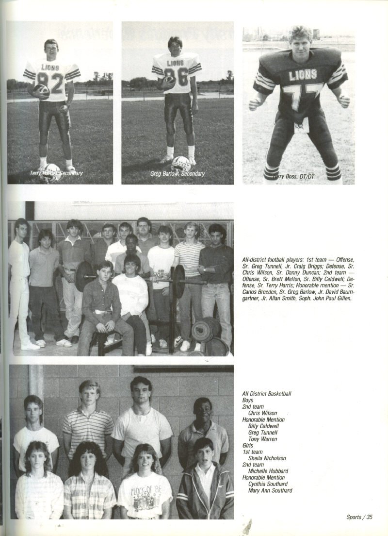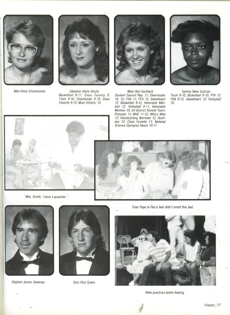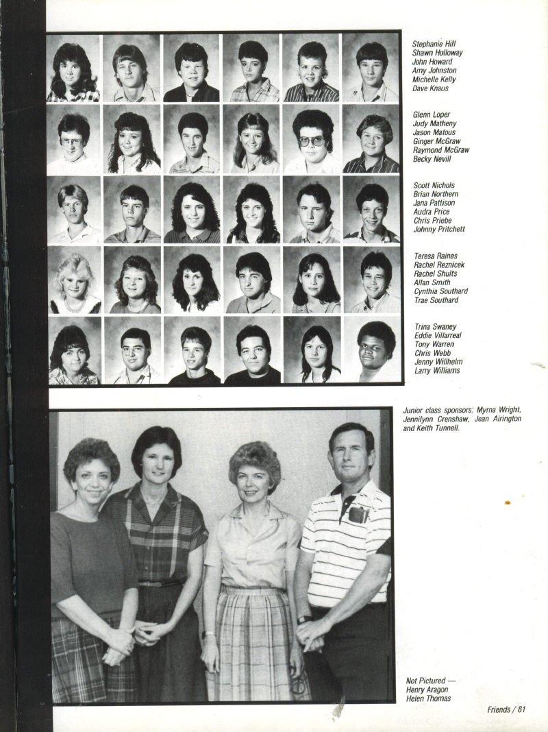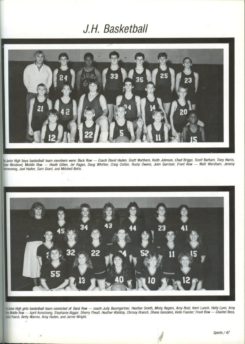Junior Varsity Cheerleaders Stephanie Hill, Theresa Nevill, Gail Taylor, Natalie Bowling,