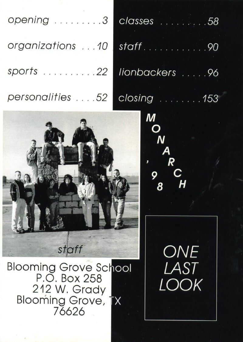 Monarch 1998, Blooming Grove School, Blooming Grove, Texas;