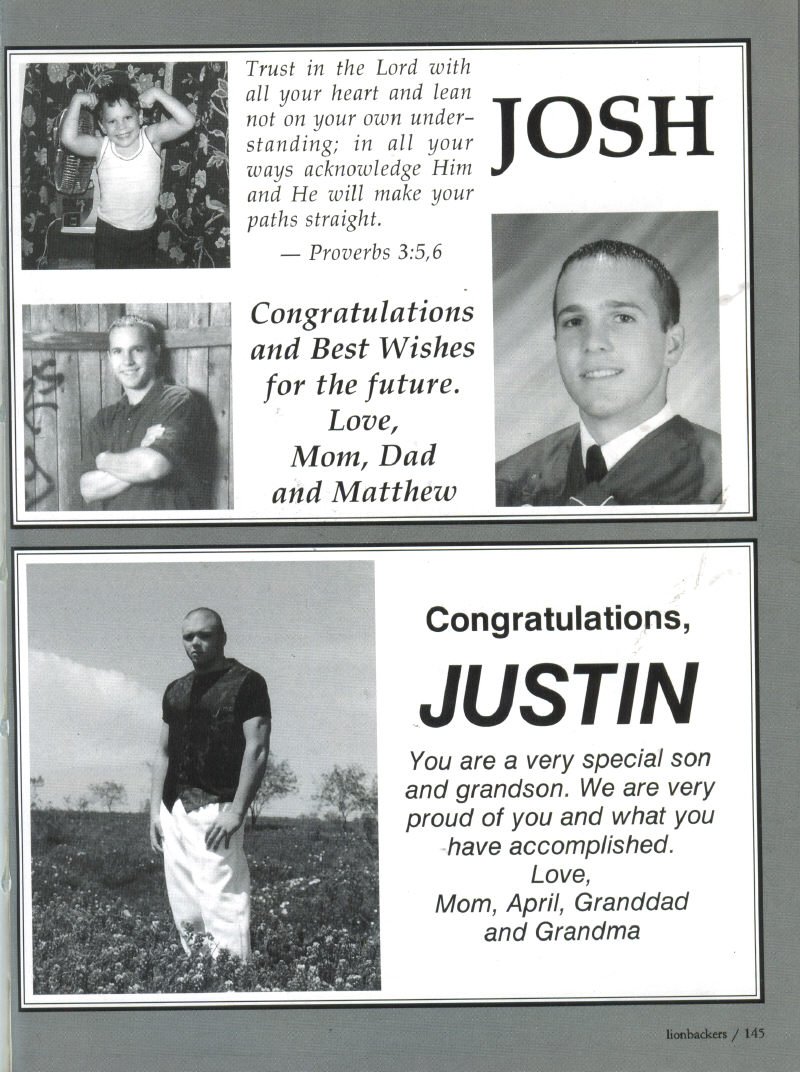 Congratulations pictures: Josh Wallen from Mom, Dad & Matthew; Justin Blissett from Mom, April, Granddad &