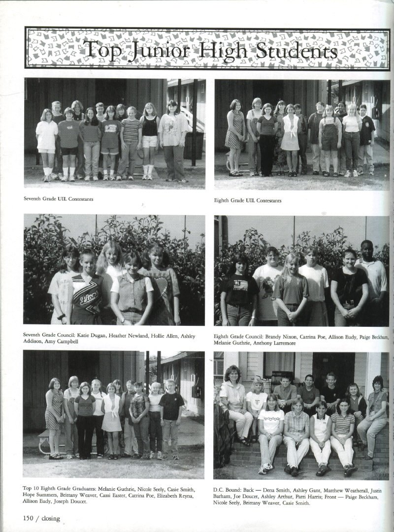 Heather Newland, Hollie Allen, Ashley Addison, Amy Campbell; Eighth Grade Council-Brandy Nixon,