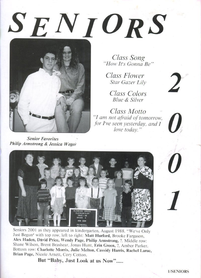 Armstrong & Jessica Weger; Kindergarten picture of Seniors