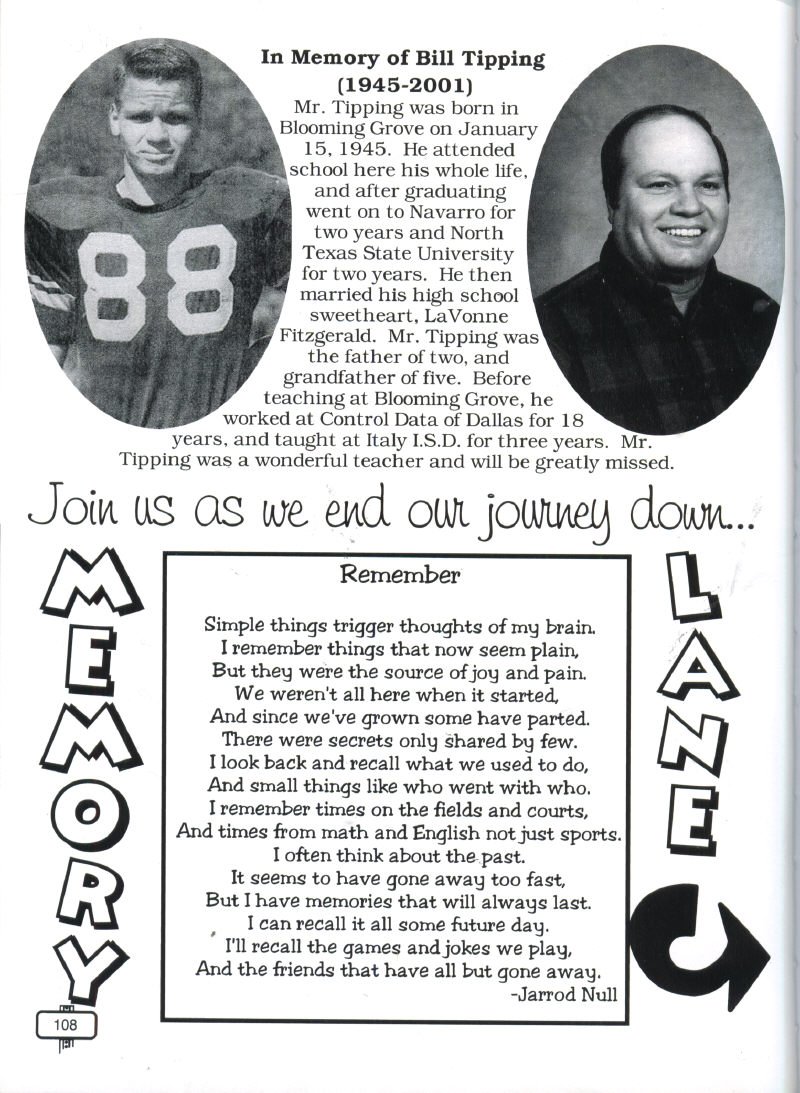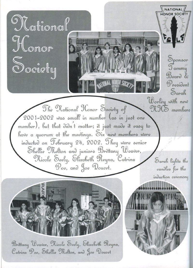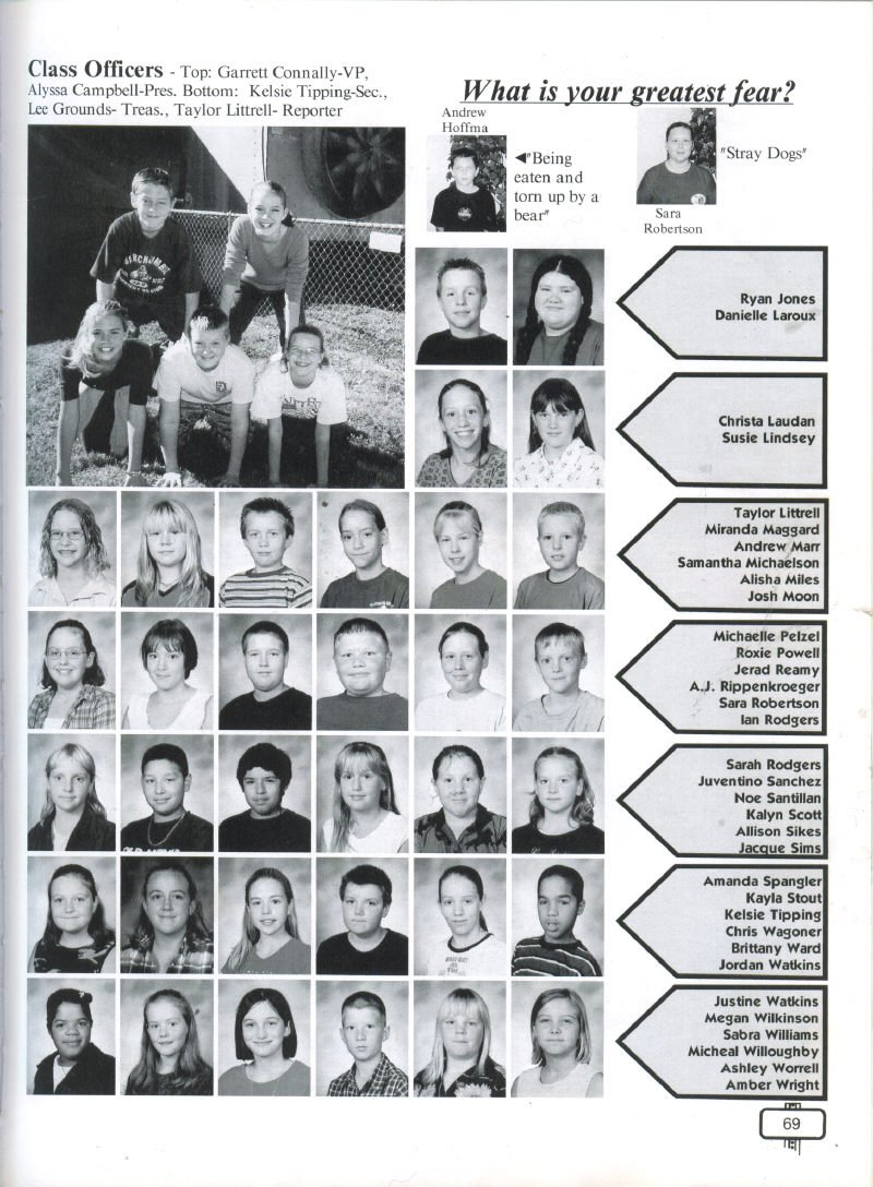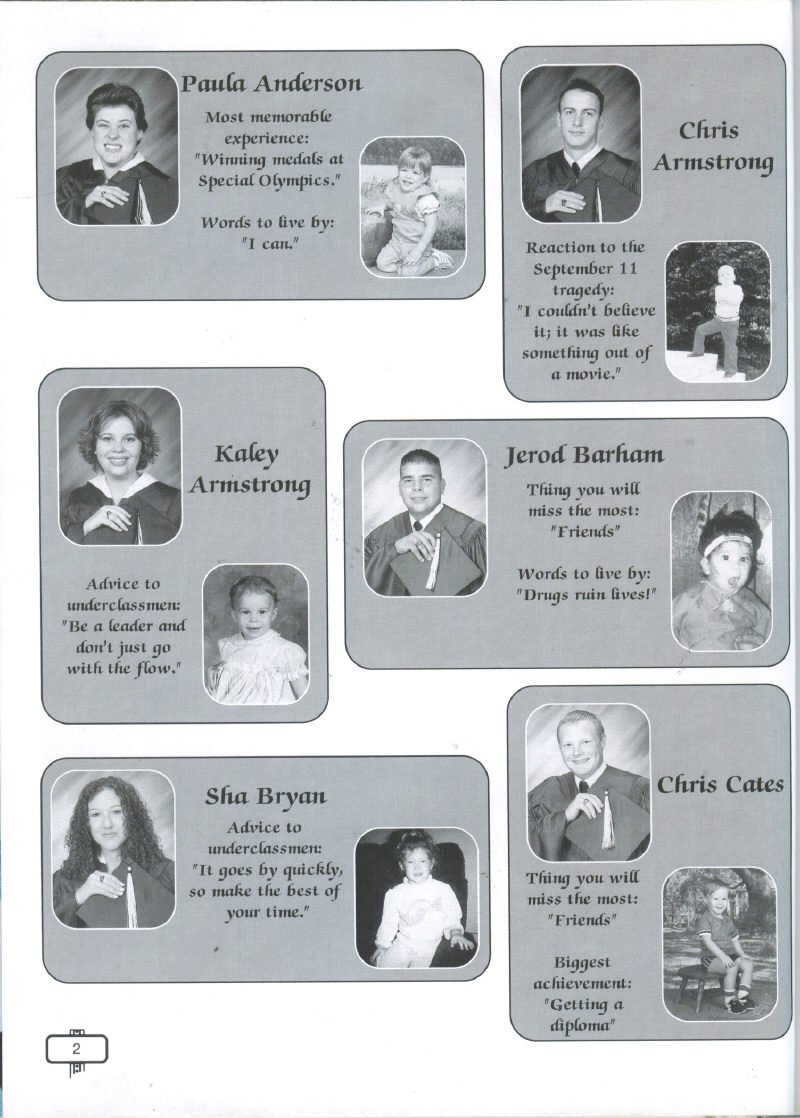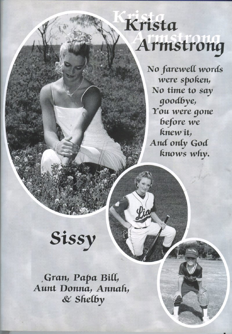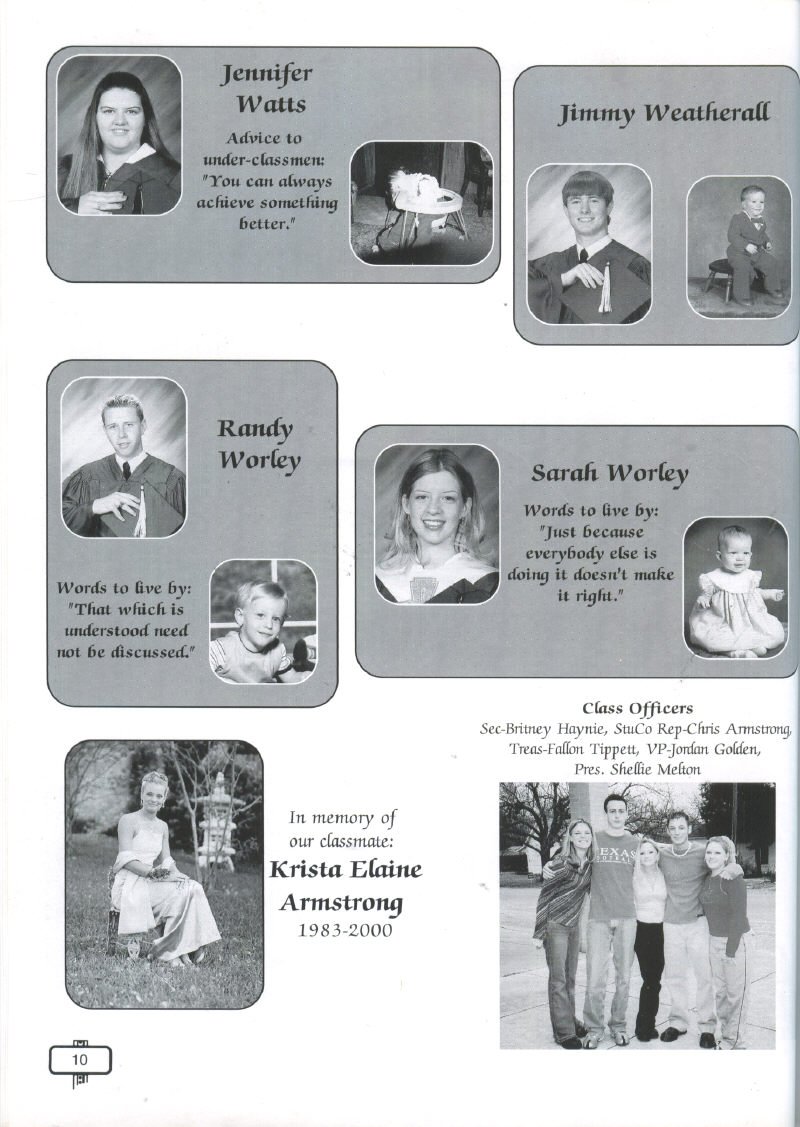 Weatherall, Randy Worley, Sarah Worley, In Memory of Krista Elaine Armstrong; Class Officers President Shellie
