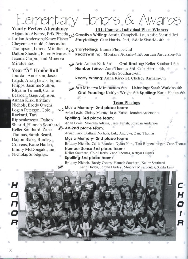 Willis, Calista Wilson, Patrick Yates; Teachers LouAnn (Massey) Armstrong,