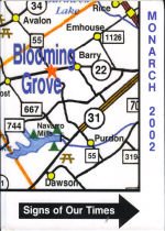 "The Bloom" was only published one year in 1928. Blooming Grove did not have another yearbook until 1941 when it was called "High School Days". The following year, the yearbook was published as "The Monarch", the title it carries till this day.
