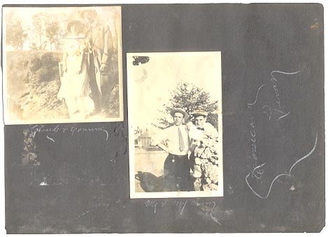 The back side of the page has a couple of photos of "Claude & Connie" and "Me & My Chum".This is a page and photograph from a 1913 album from Corsicana, Texas showing Athletes and Debaters that won the 1913 State