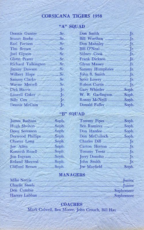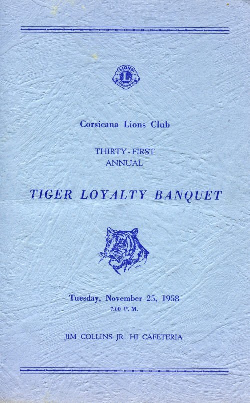 1958 Tiger Loyalty Banquet Corsicana High School Corsicana, Navarro County, Texas