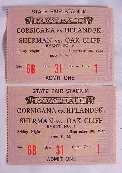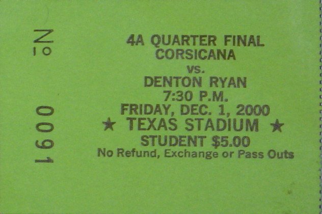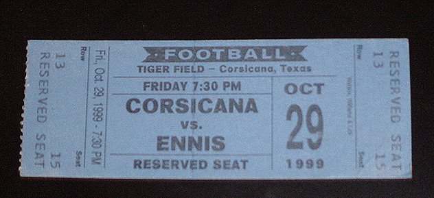Corsicana High School Football Ticket StubsCorsicana, Navarro County, Texas