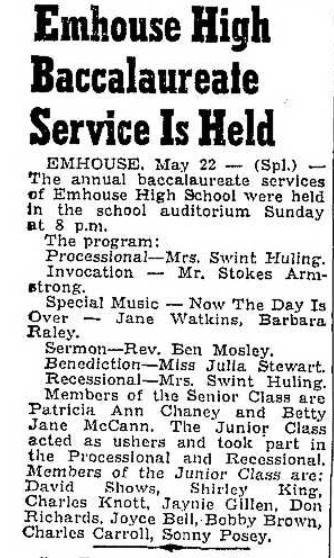1958 Emhouse School Commencement Emhouse, Navarro County, Texas