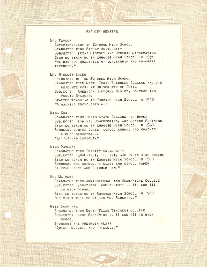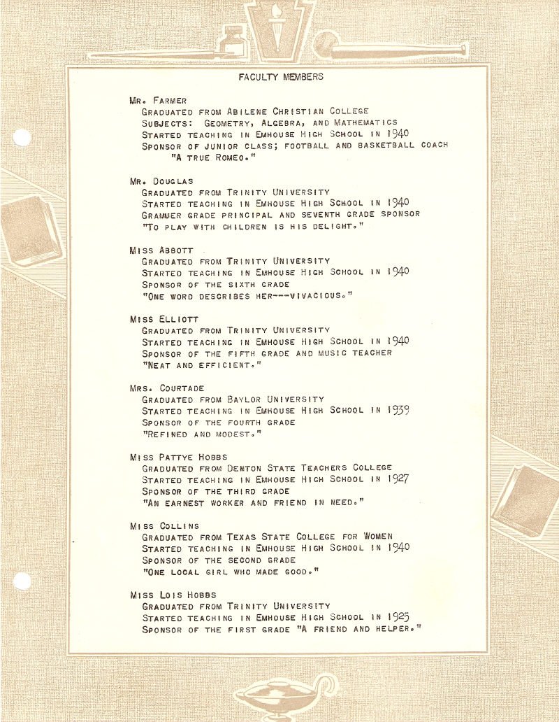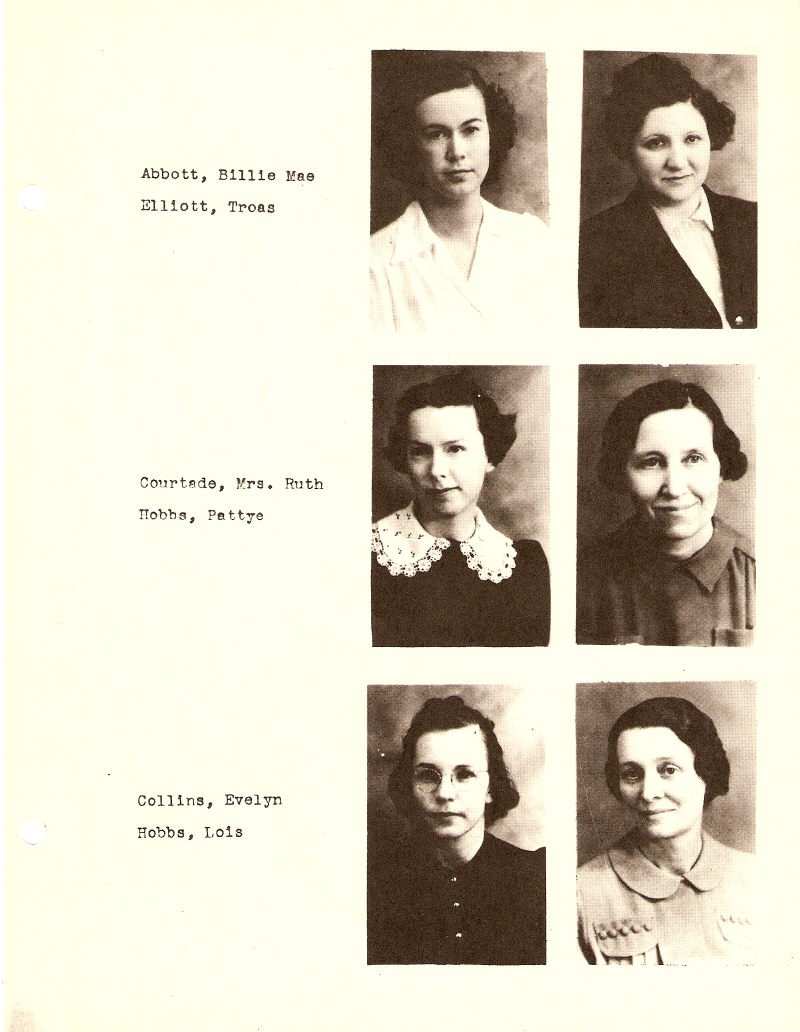 Faculty: Billie Mae Abbott, Troas Elliott, Mrs.