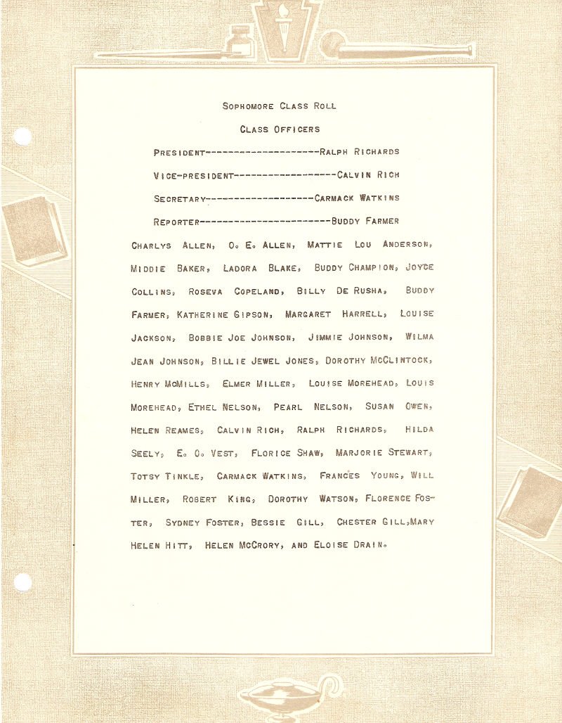 Sophomore Class: Elmer Miller, Louise Morhead,