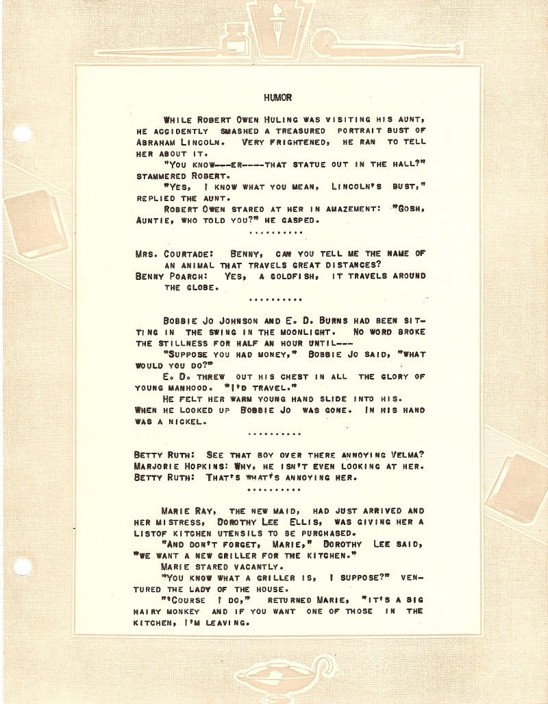 Hilda Seely, O. E. Vest, Marjorie Stewart, Totsy Tinkle, Frances Young,
