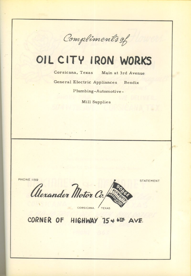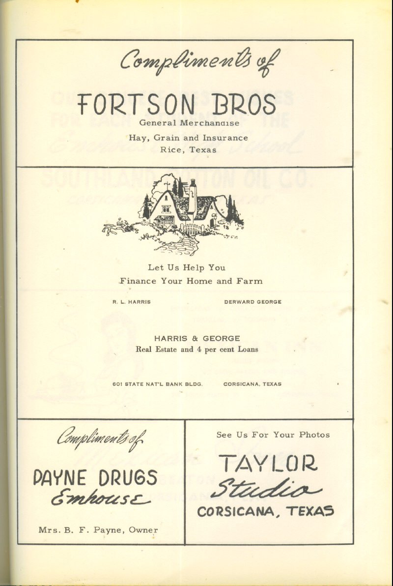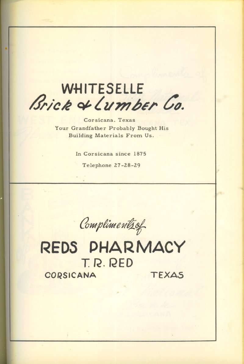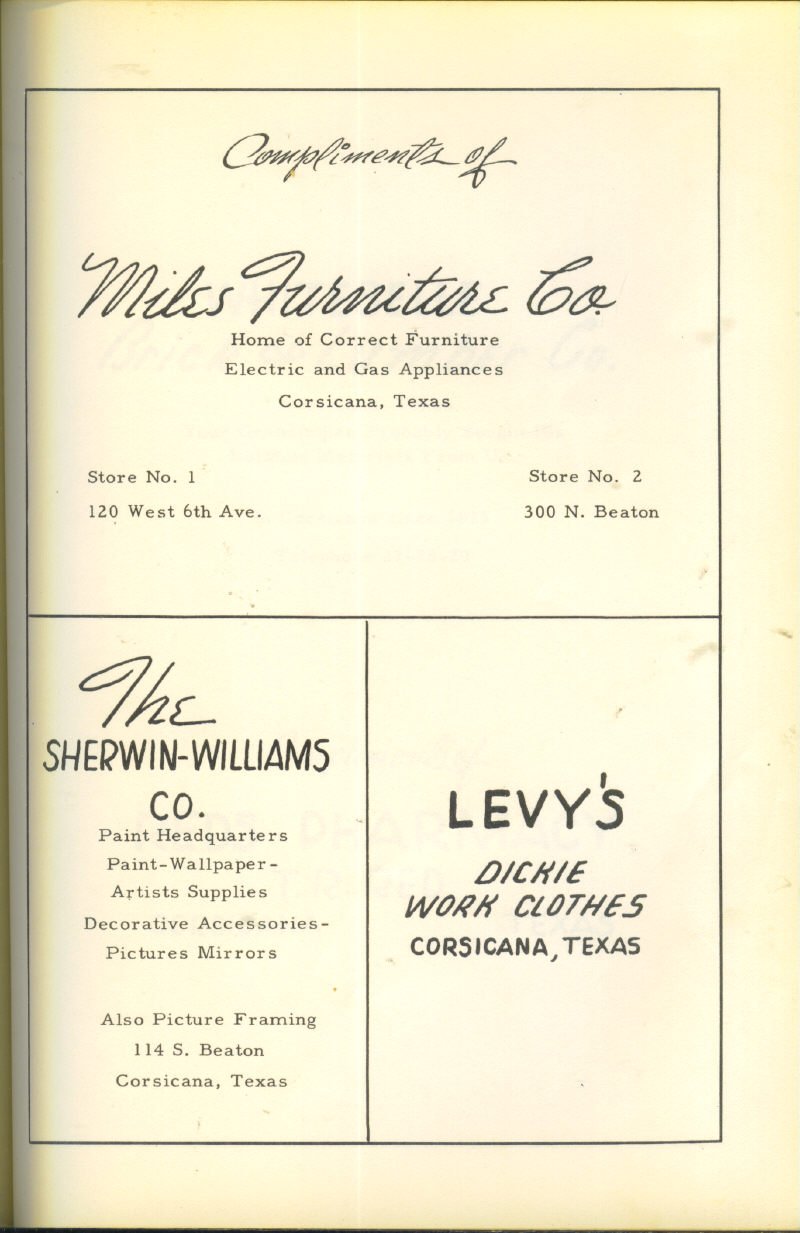 Advertising – Macray Dept. Store, Bowie Implement Co., Johnson’s Pharmacy, R. M. Shoe Shop