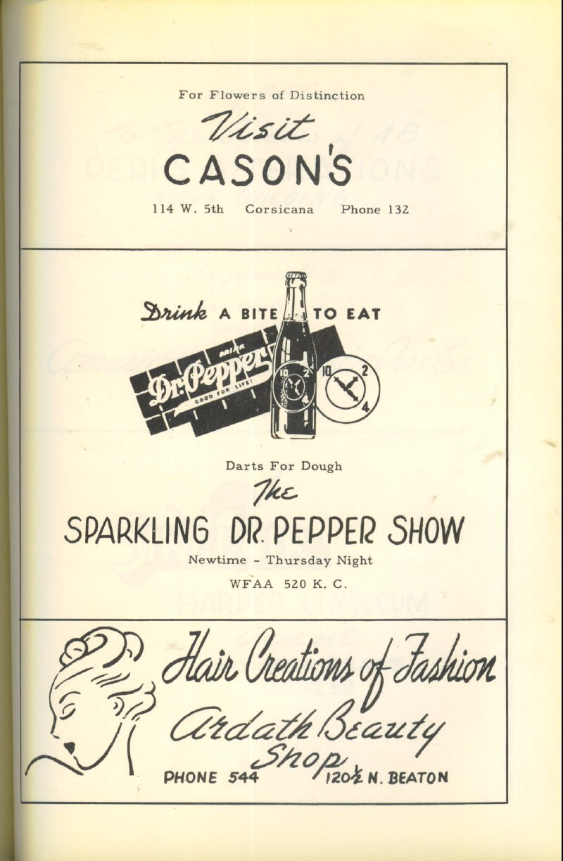 Advertising – Cason’s Flowers, Dr. Pepper Bottling Co., Ardath Beauty Shop