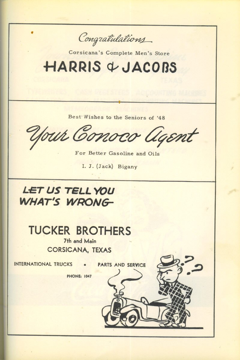 Advertising – Harris & Jacobs, I. J. “Jack” Bigony Conoco Agent, Tucker Brothers International