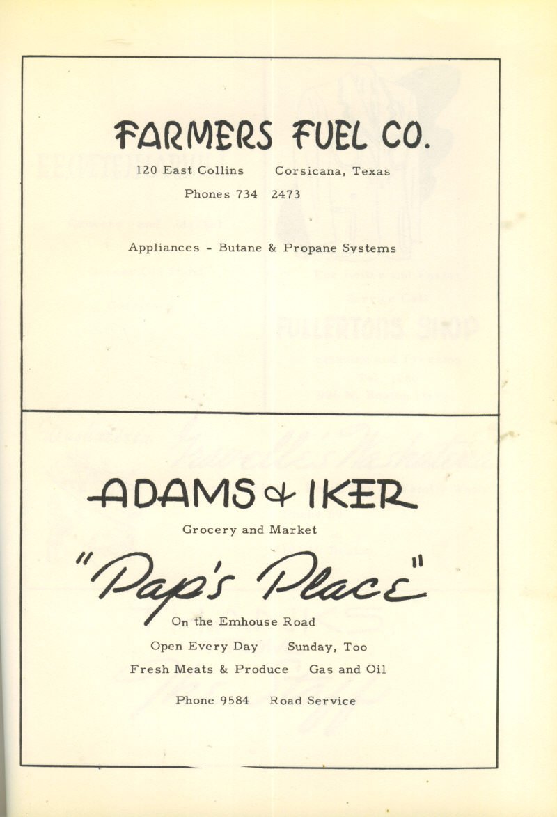 Advertising – Farmers Fuel Co., Adams & Iker Grocery & Market “Pap’s Place”
