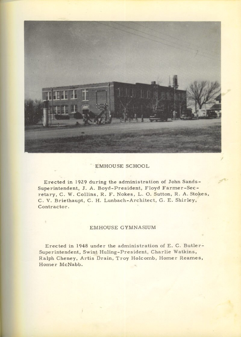 Lunbach-Architect, G. E. Shirley-Contractor; EMHOUSE GYMNASIUM- Erected in 1948 under