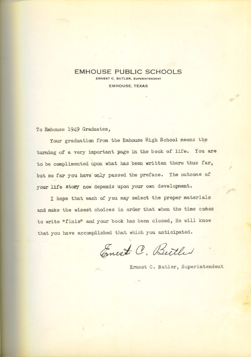LETTER FROM SUPERINTENDENT Ernest C. Butler