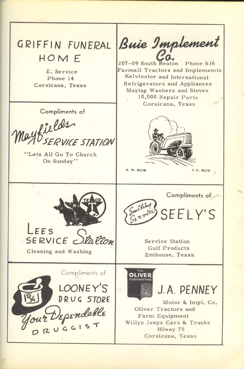 Station, Seely’s Service Station, Looney’s Drug Store, J. A.
