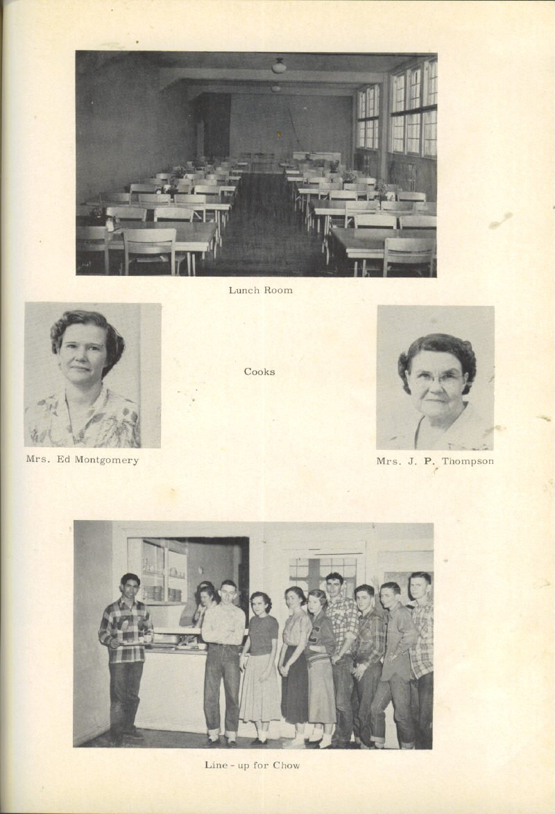 GOOD PICTURE OF LUNCHROOM; COOKS – Mrs. Ed Montgomery and Mrs. J. P.