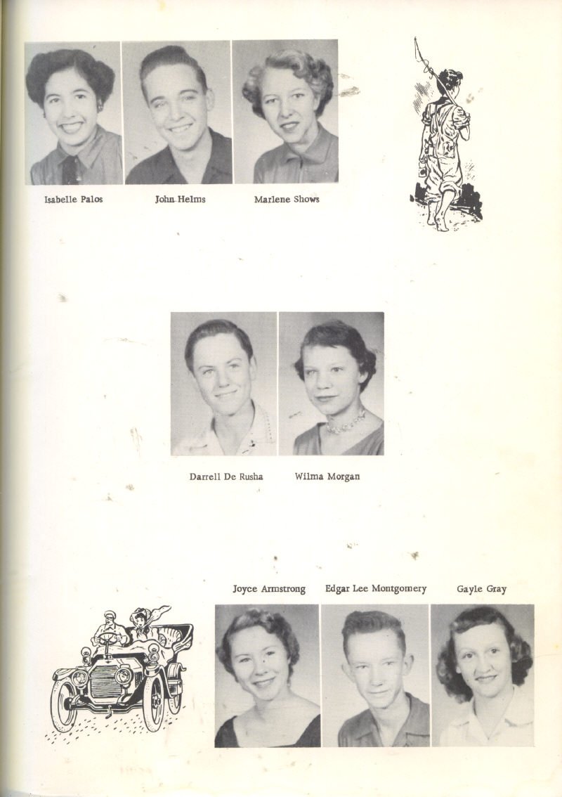 SOPHOMORES – Isabelle Palos, John Helms, Marlene Shows, Darrell DeRusha, Wilma Morgan, Joyce Armstrong, Edgar Lee Montgomery,