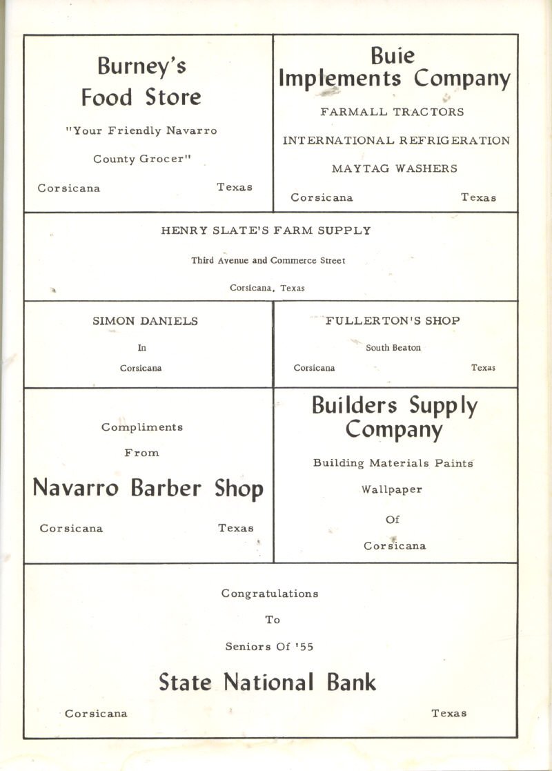 Red’s Pharmacy, W. C. Ray & Family, Frank Seely & Son, J.