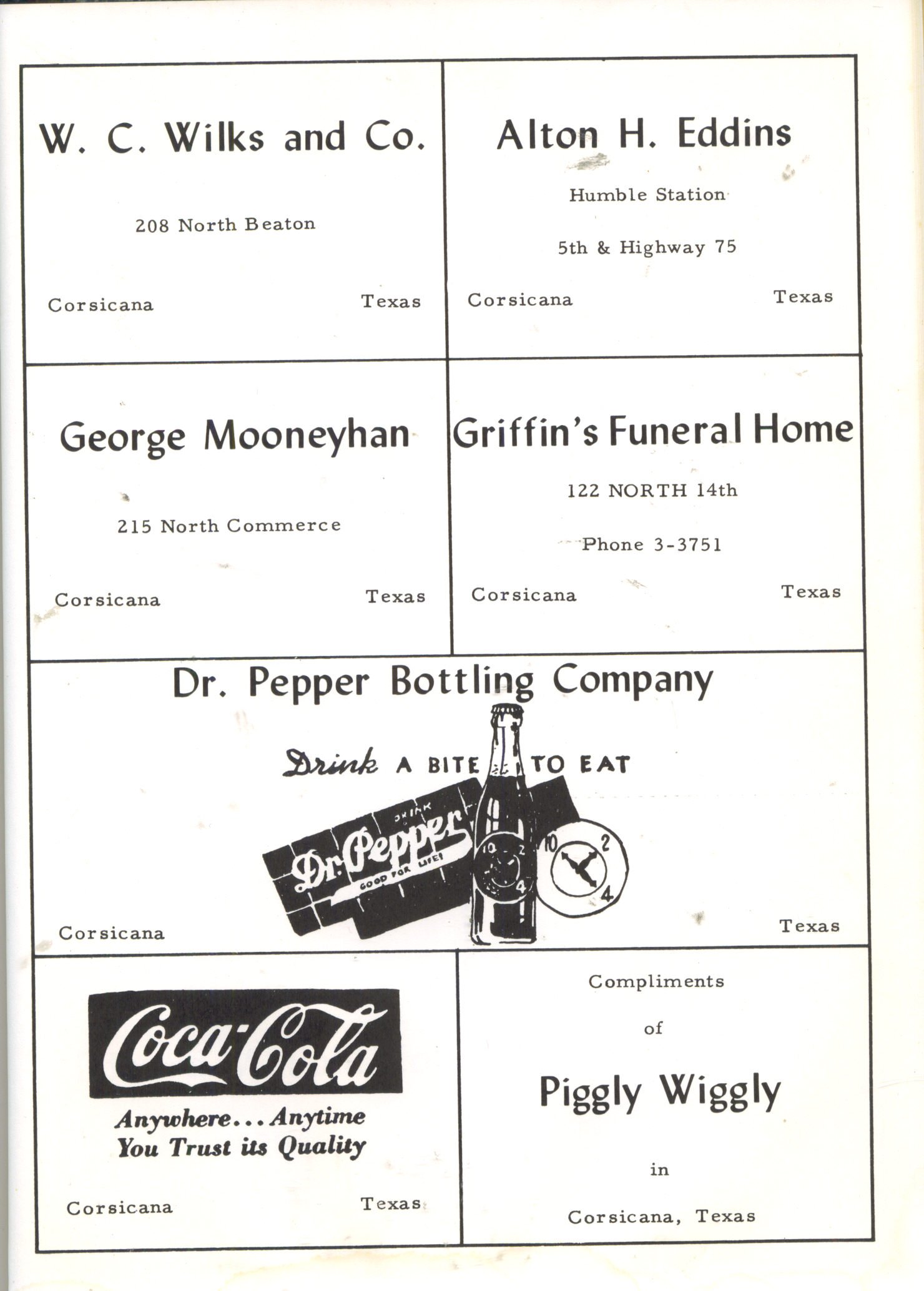 Mooneyhan, Griffin’s Funeral Home, Dr. Pepper Bottling