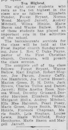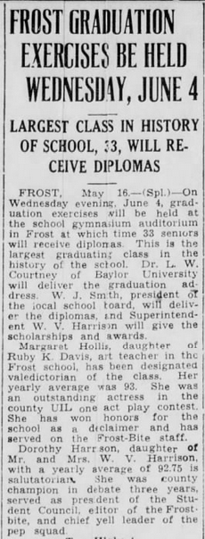 1941 Frost High School Commencement Frost, Navarro County, Texas