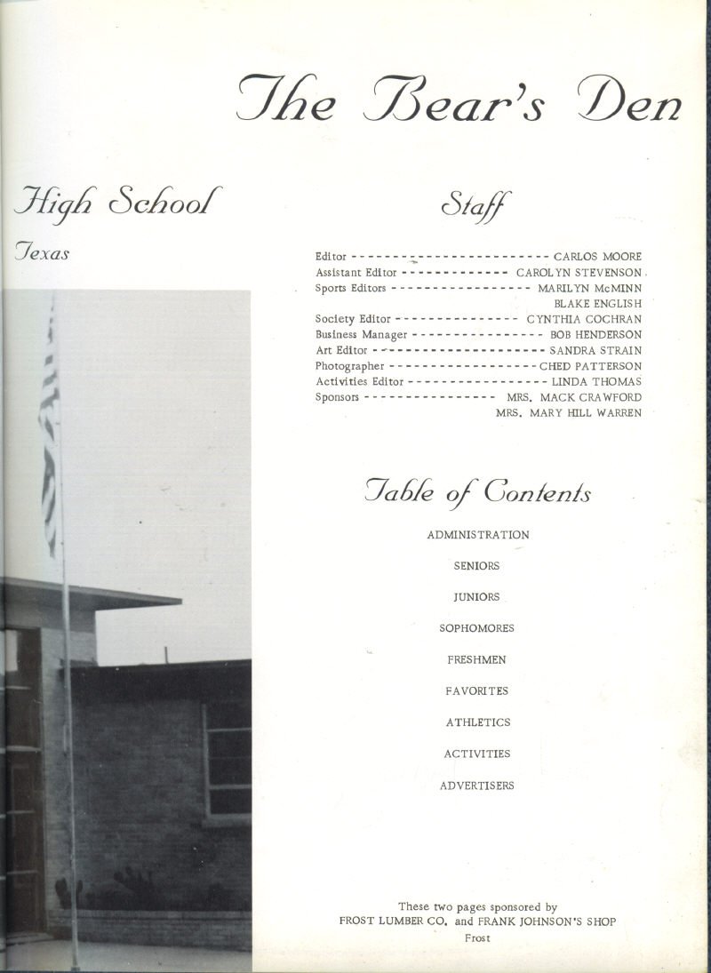 Manager - Bob Henderson; Assistant Editor - Carolyn