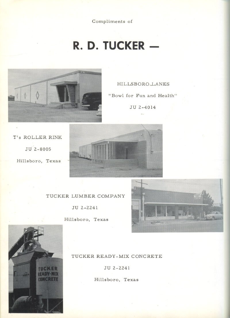 Advertisements - R. D. Tucker, Hillsboro Lanes, T's