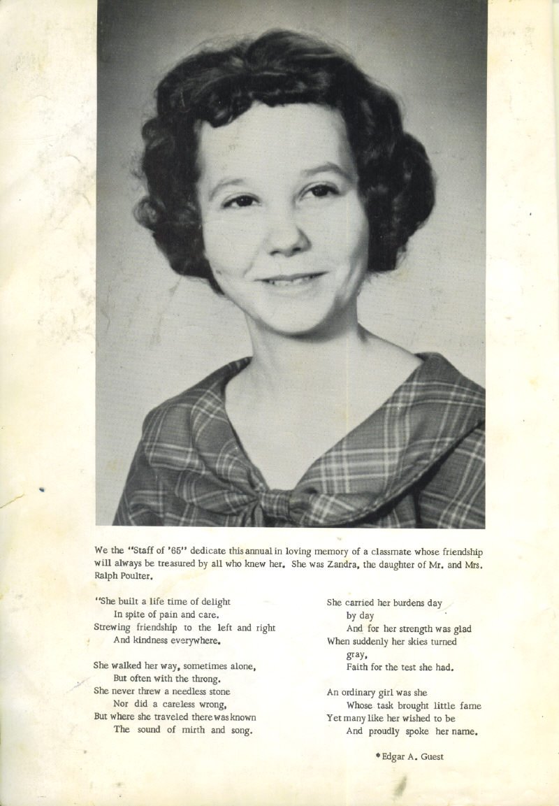 Picture and Dedication to memory of Zandra Poulter