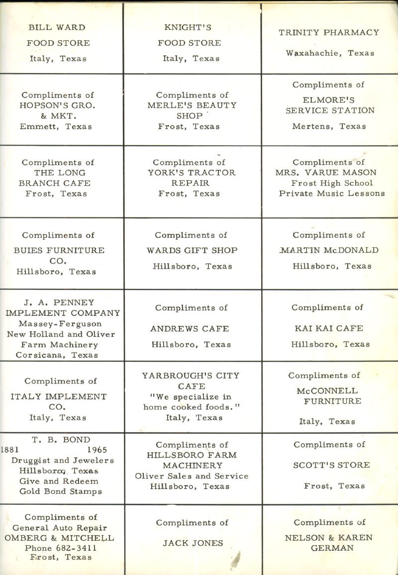 Ads – Bill Ward Food Store - Knight’s Food Store - Trinity